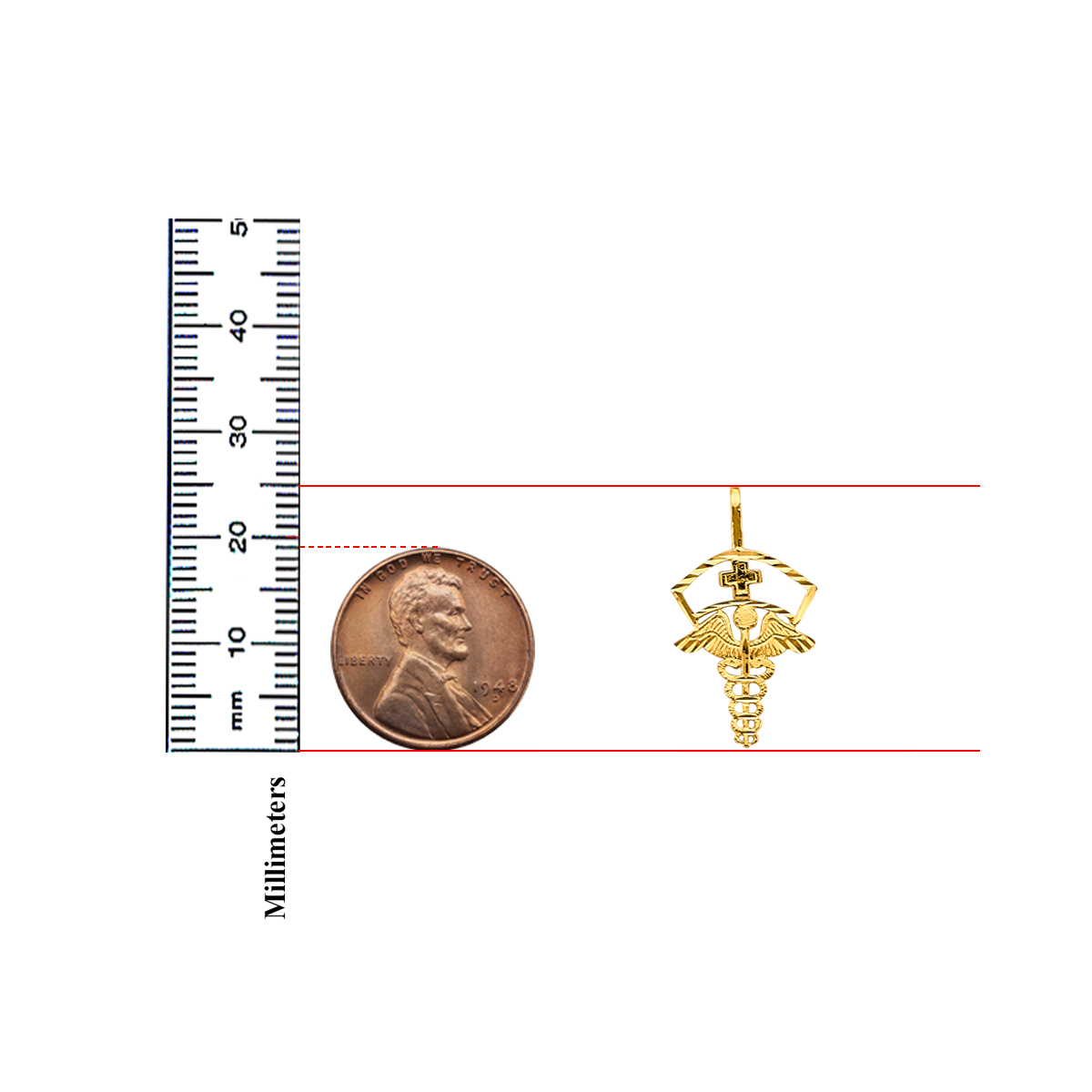 14K Yellow Gold Medical Service Symbol Pendant