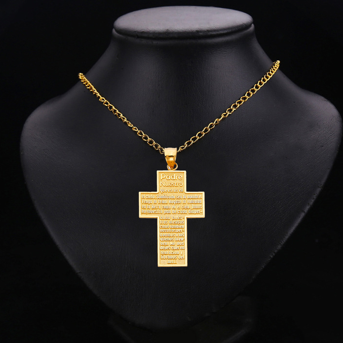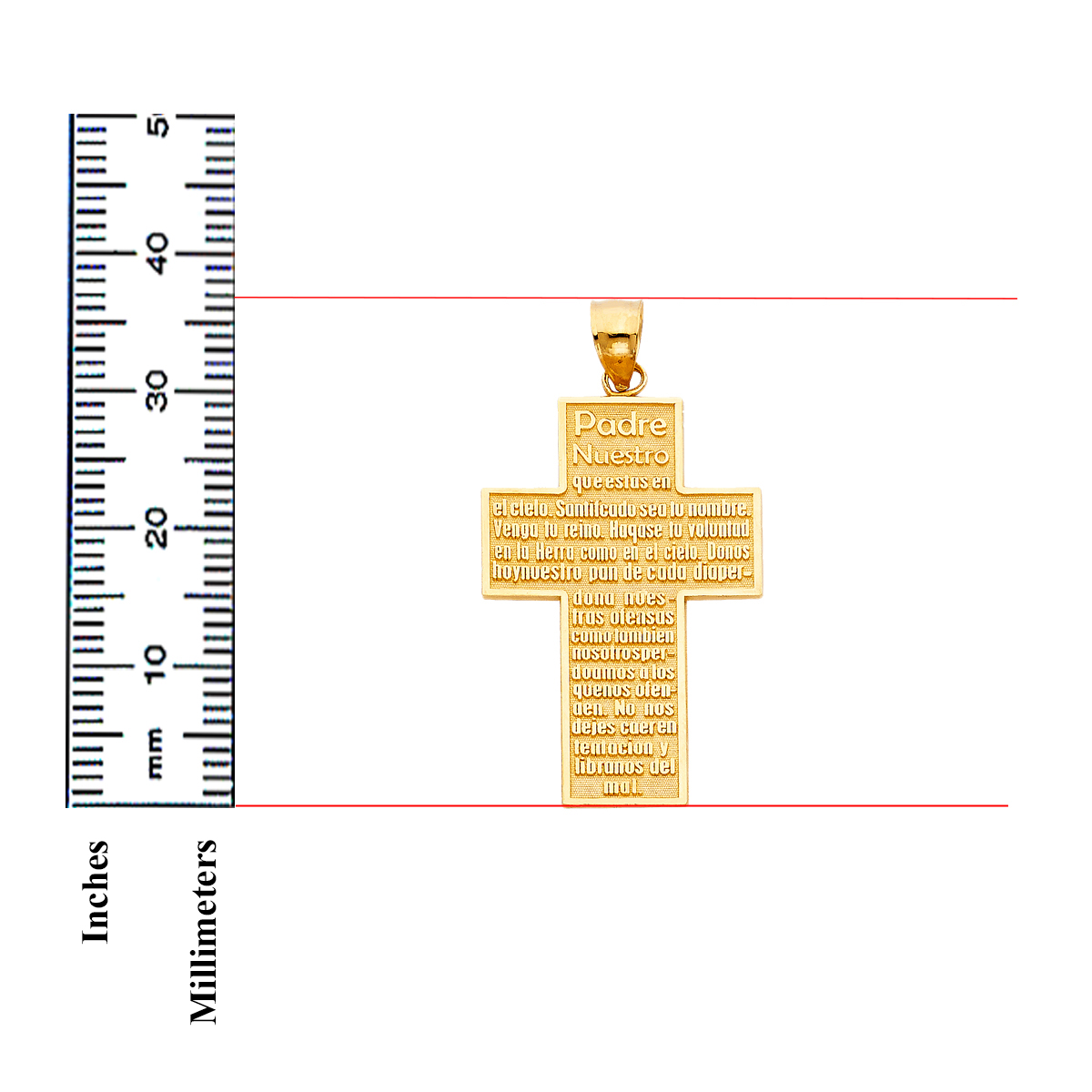 14K Yellow Gold Padre Nuestro Cross Pendant