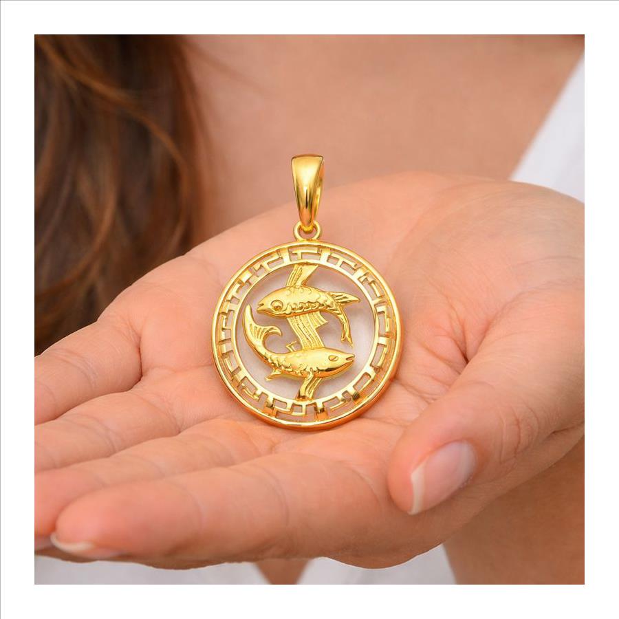 Astrology Jewelry 14k Gold Round Pisces Zodiac
