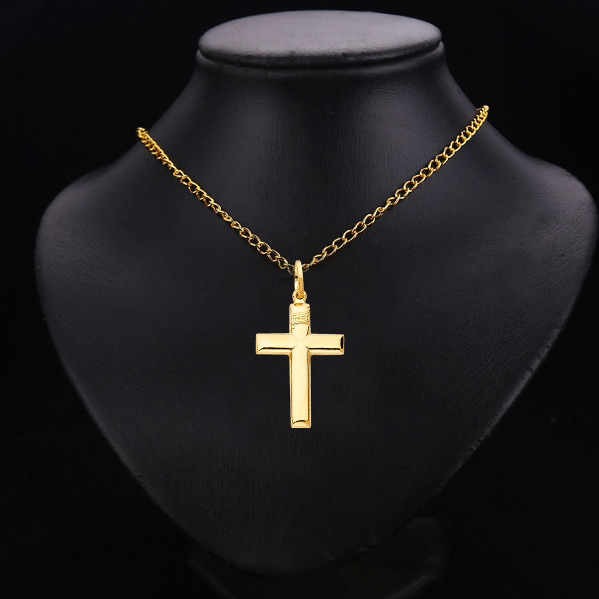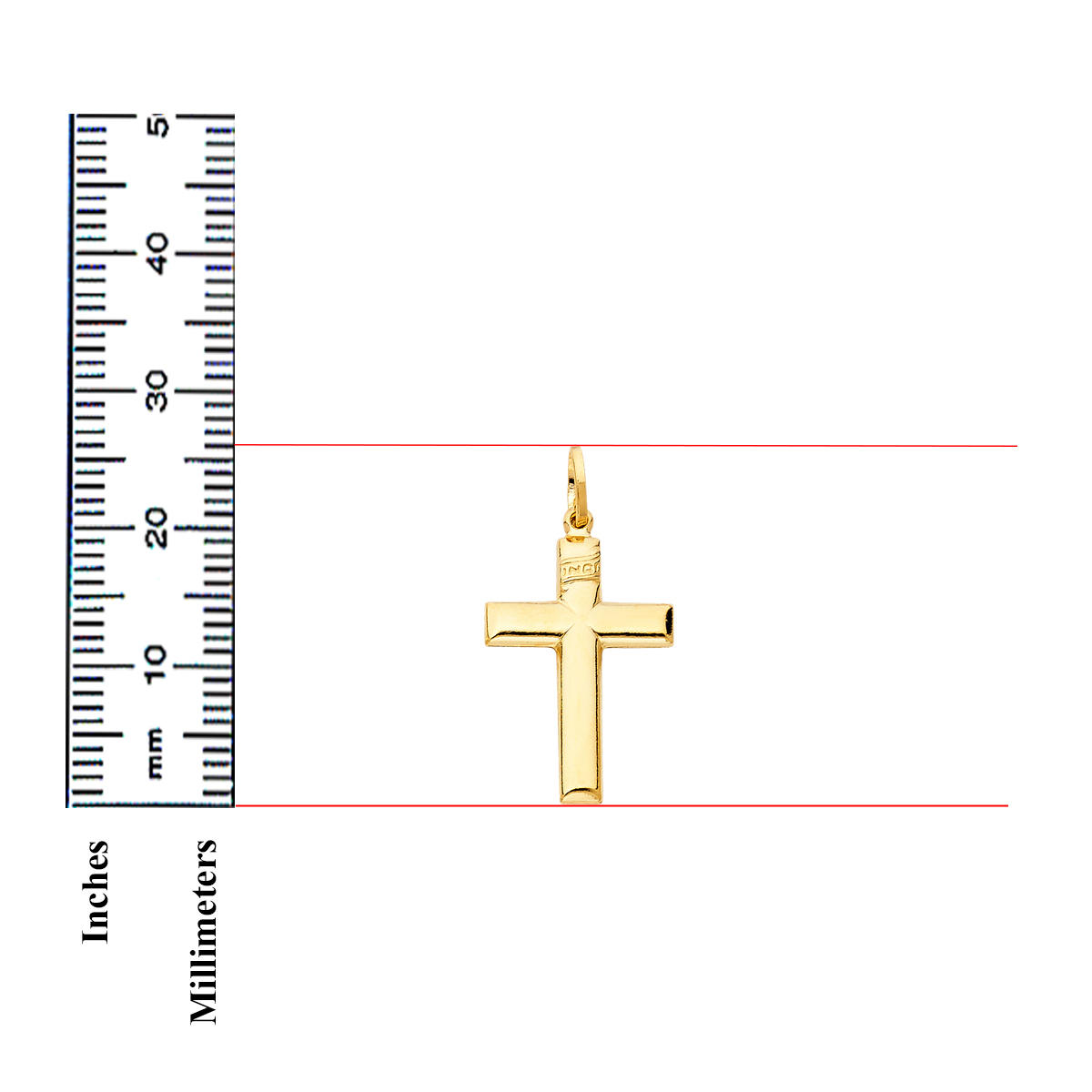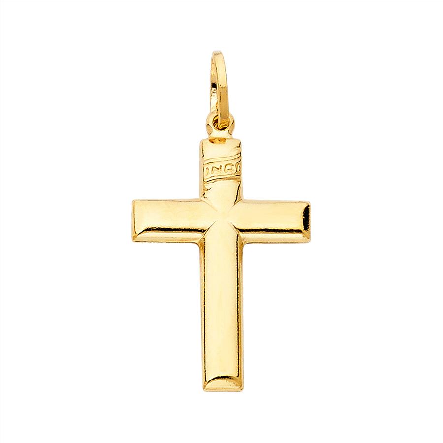 14K Yellow Gold Simple Cross Religious Pendant - 26 mm X 18  mm