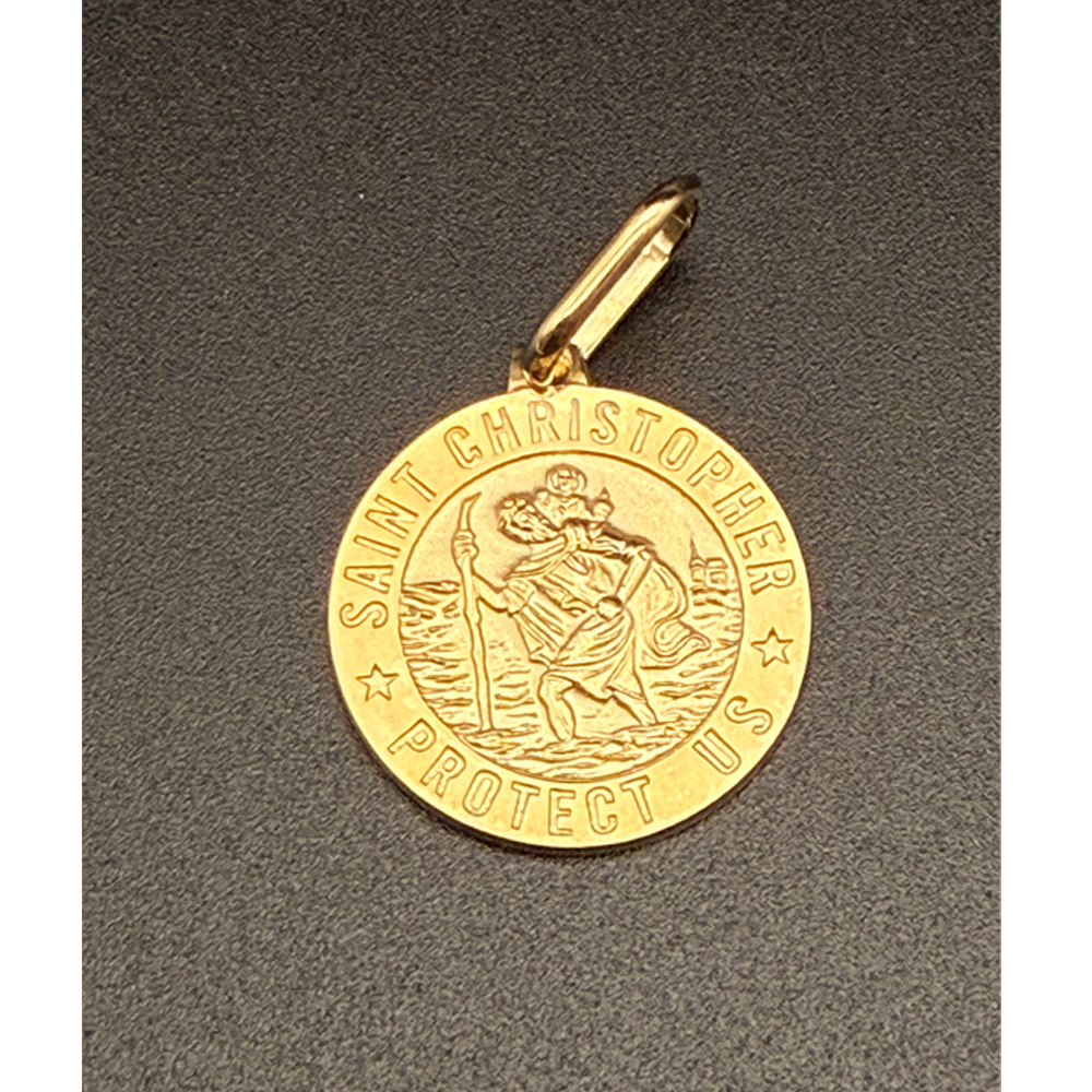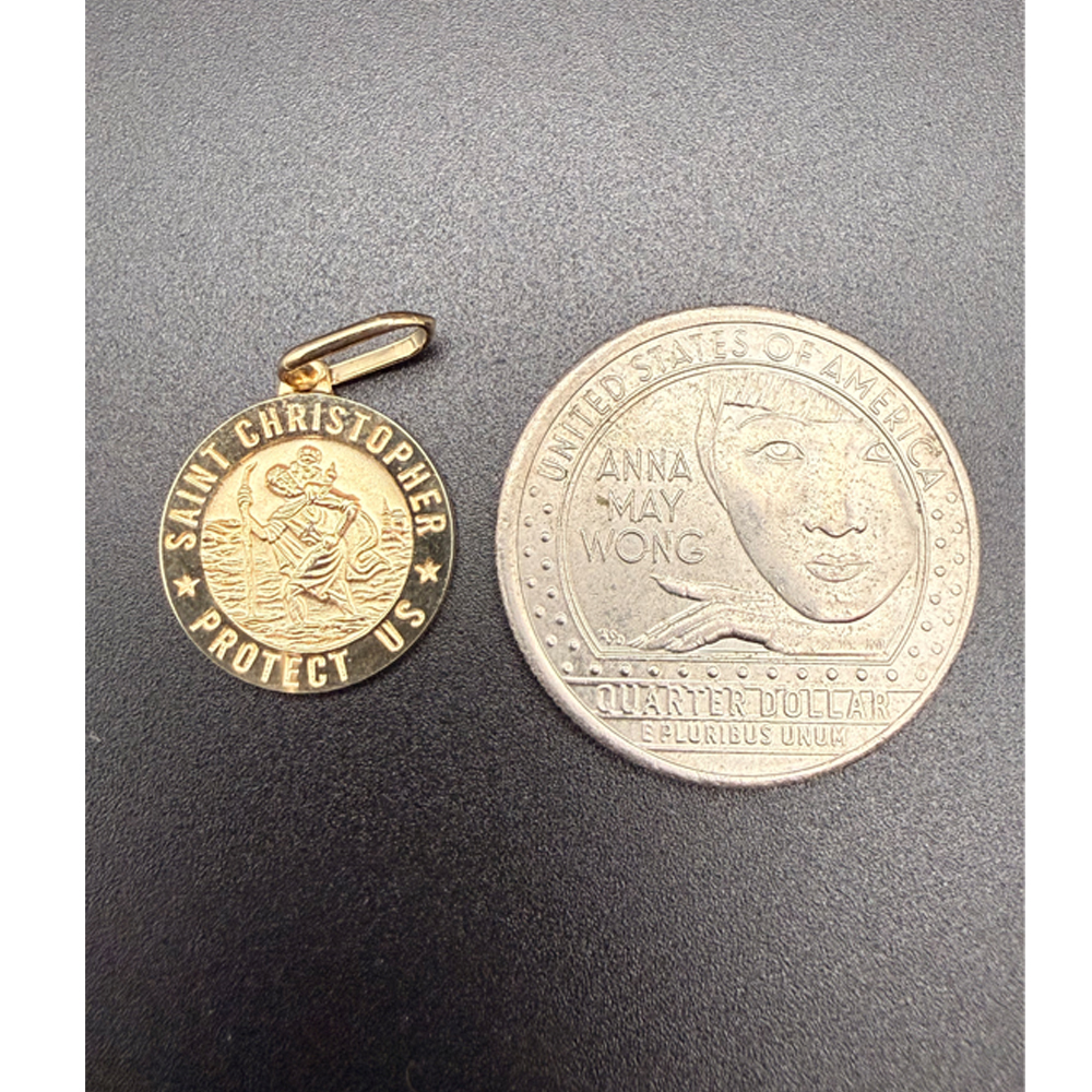 14K Yellow Gold St. Christopher Round Medal Pendant