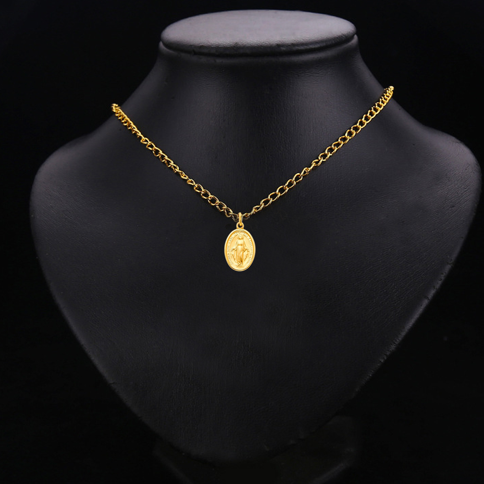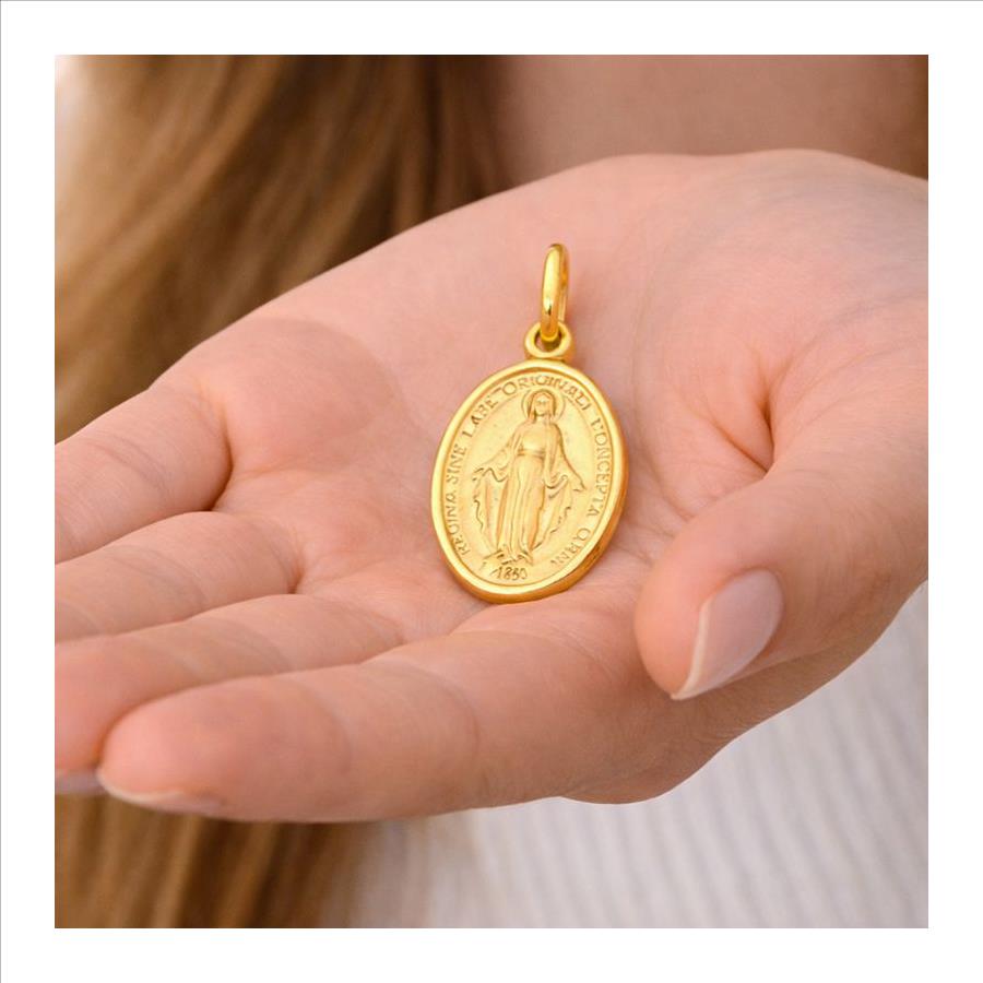 14K Yellow Gold Virgin Mary Medal Pendant