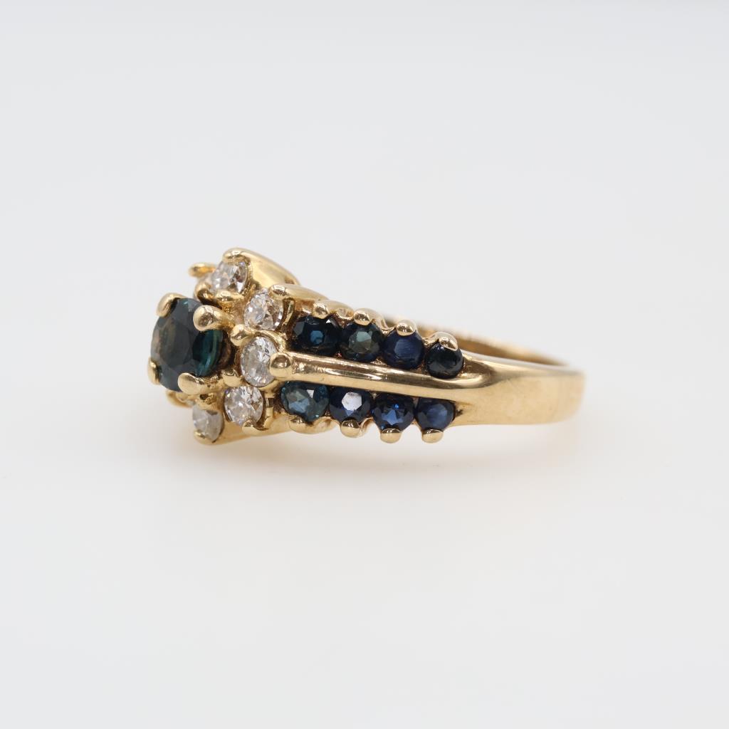 14kt Gold Blue Sapphire Diamond Accent Ring