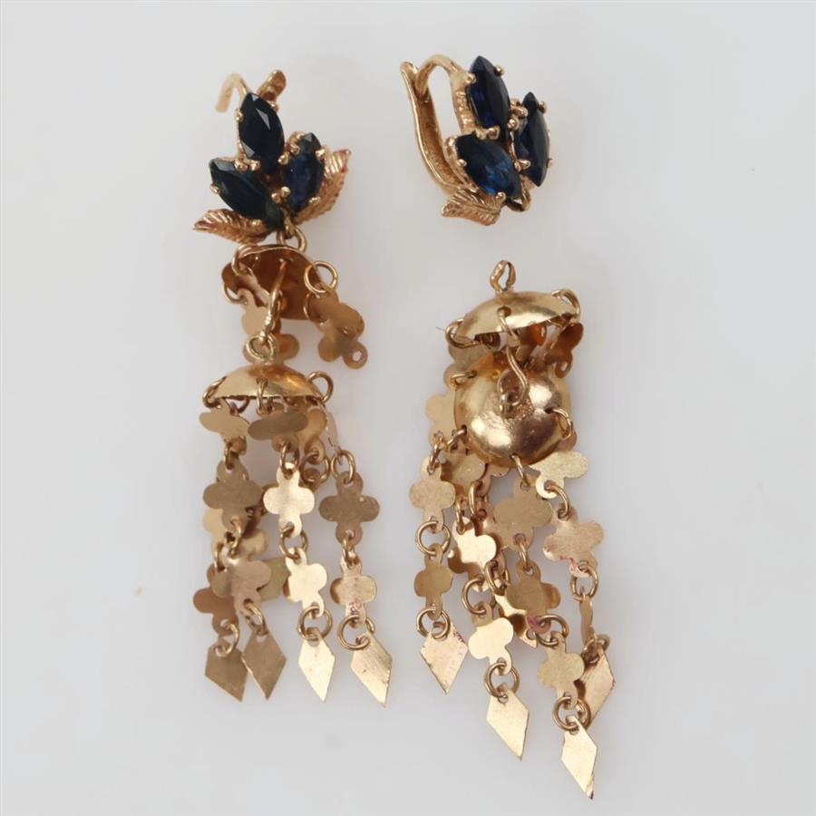 14kt Gold Blue Stone Dangle Earrings