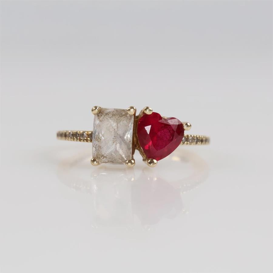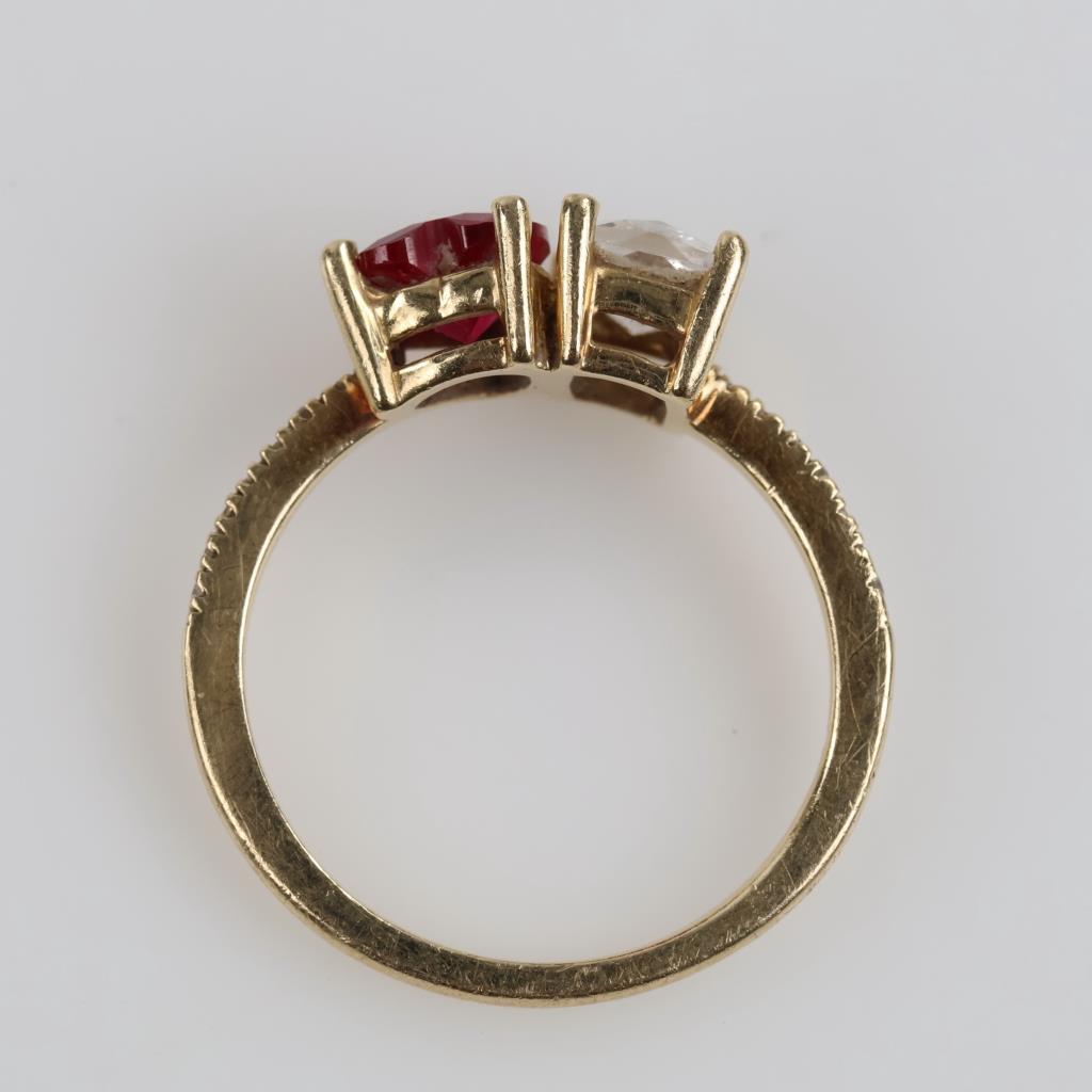 14kt Gold Clear And Red Stone Ring