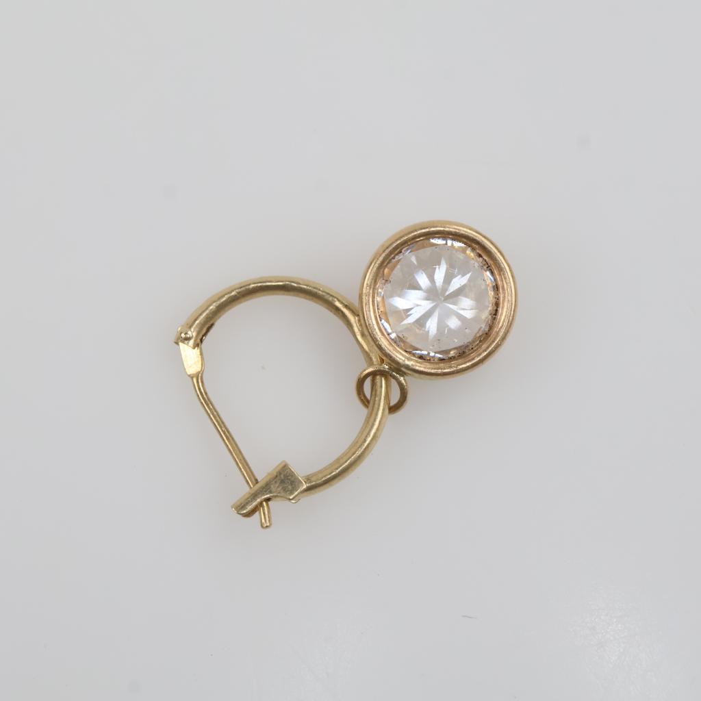 14kt Gold Clear Stone Dangle Hollow Hoop Earring