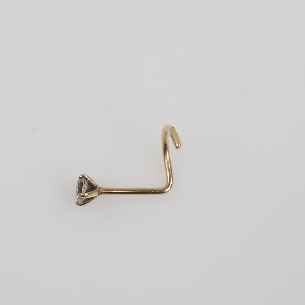 14kt Gold Clear Stone Nose Ring