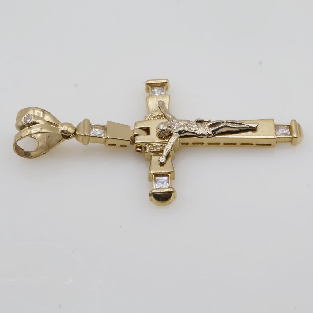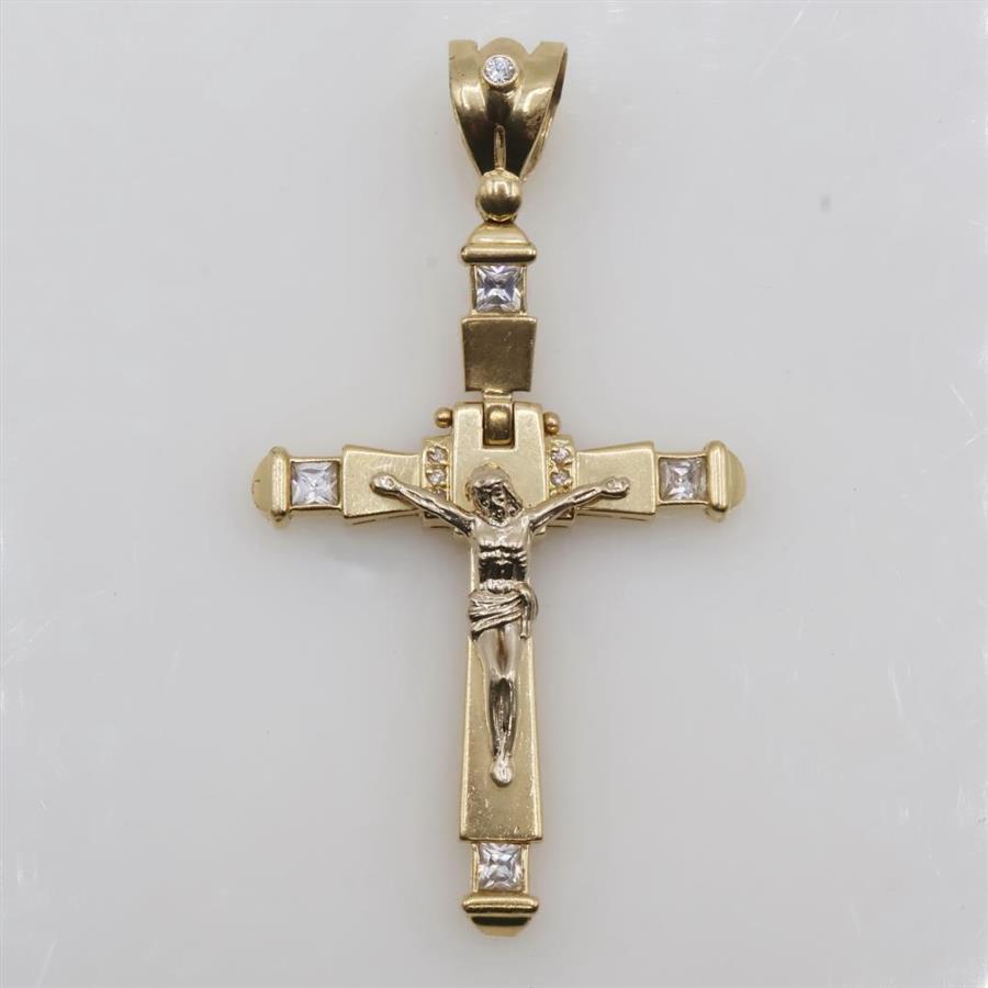 14kt Gold Cubic Zirconia Hinged Cross Pendant