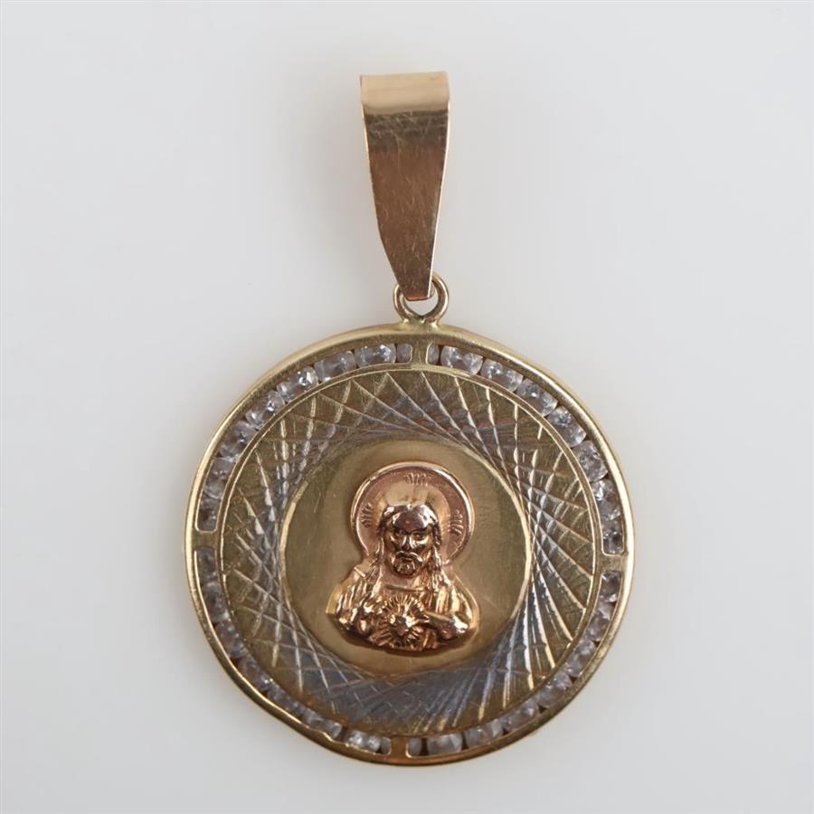 14kt Tri Colored Gold Clear Stone Religious Pendant