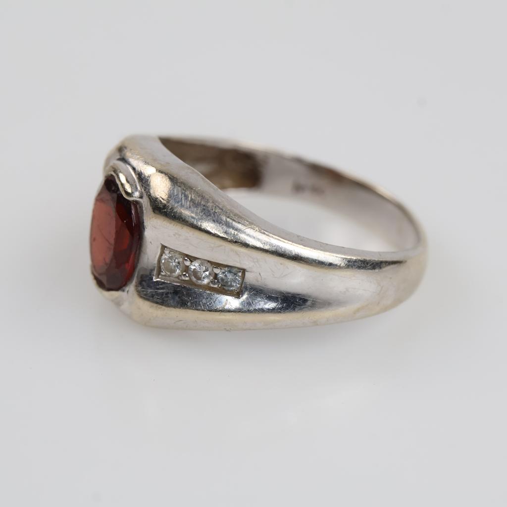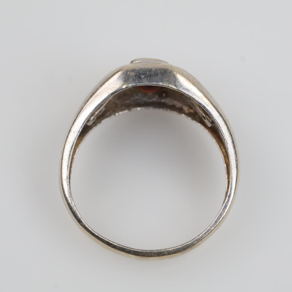 14kt White Gold Red Stone Diamond Accent Ring