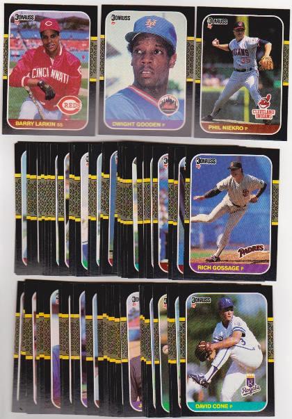 This is a collection of 150 different 1987 Donruss baseball cards.  Most of these are in Near Mint or better condition but some are a little lower grade.  This lot has several stars including Barry Larkin rookie, David Cone rookie, Dwight Gooden, Phil Niekro, Rich Gossage, and more.