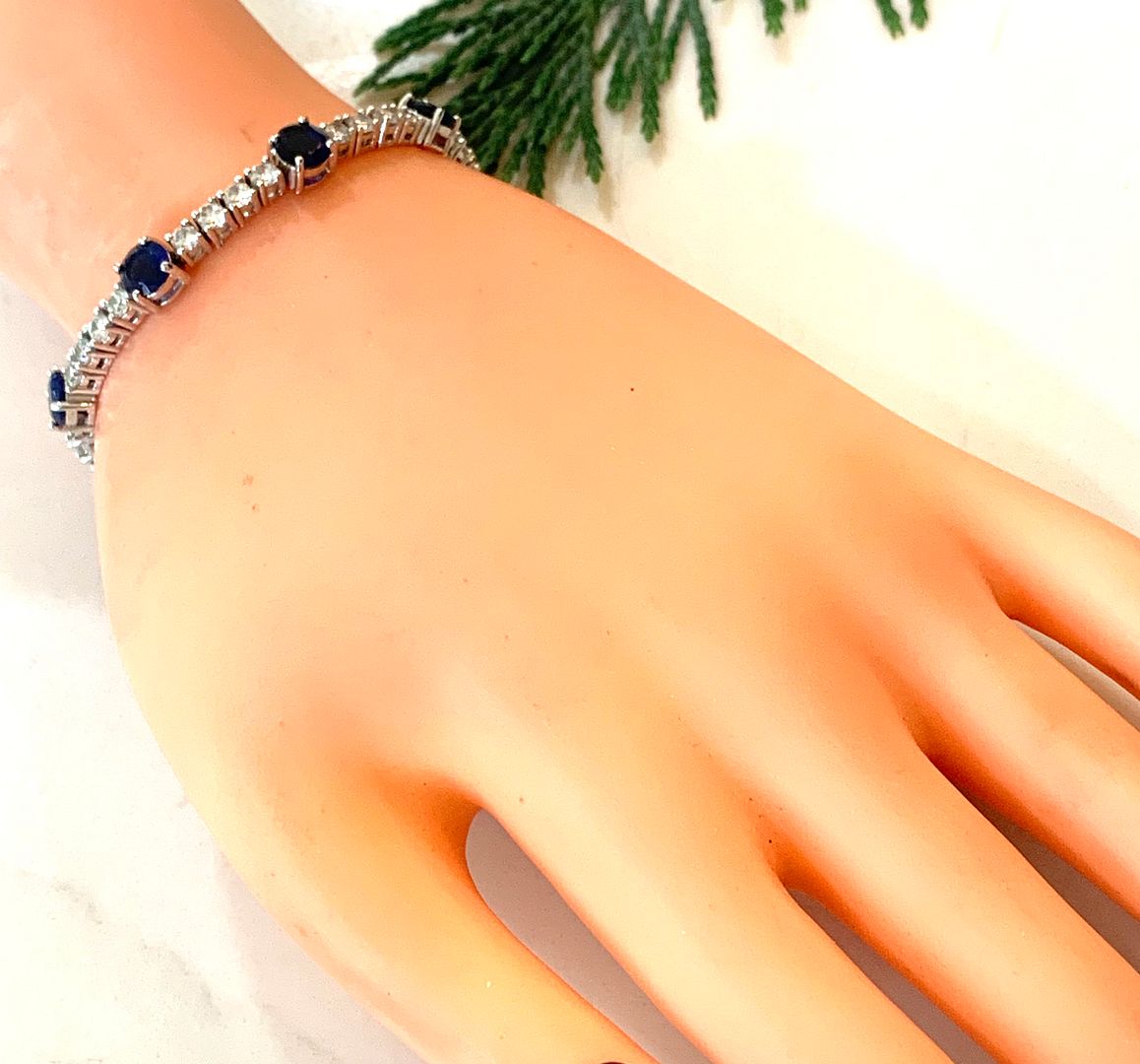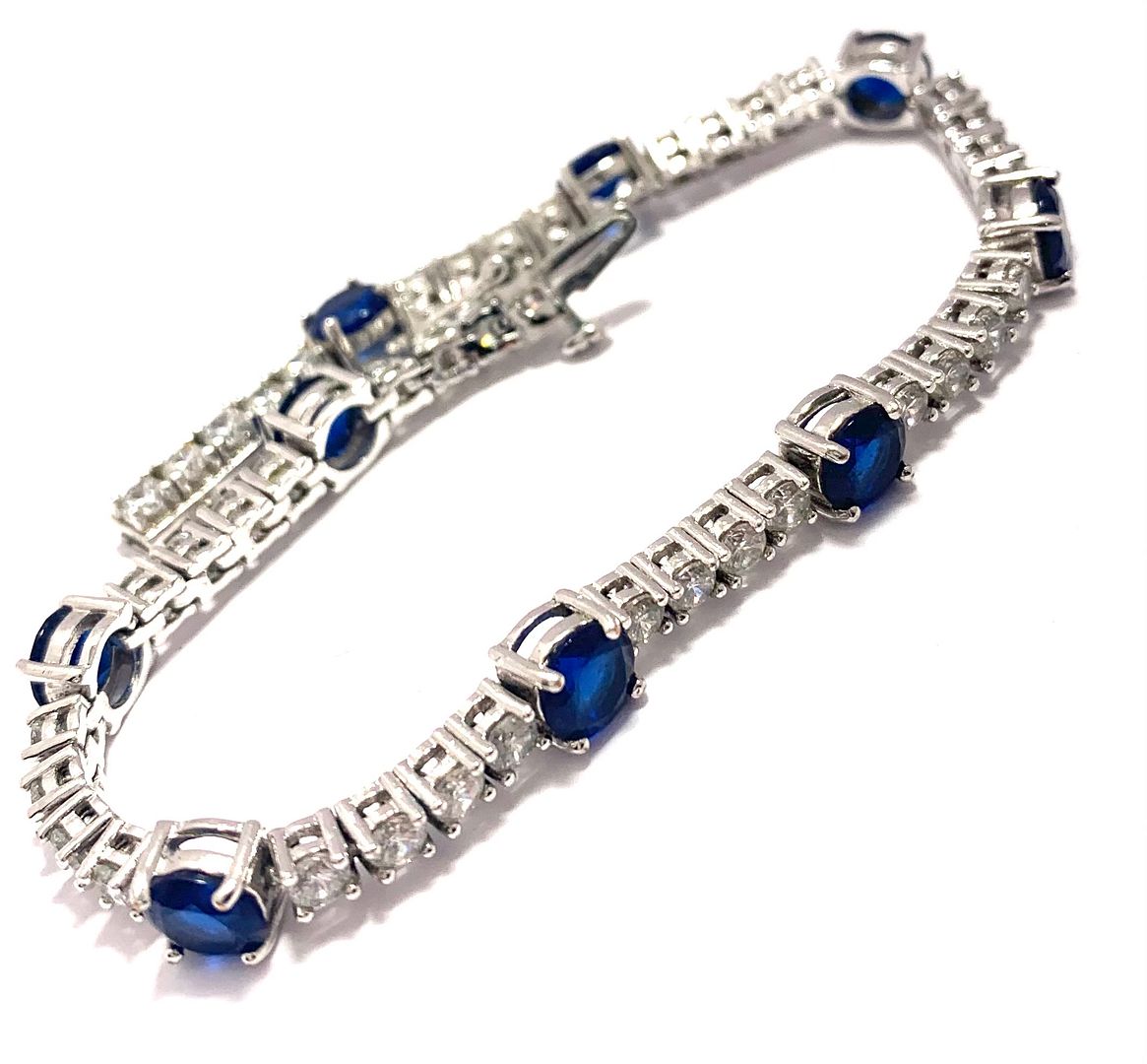 15.00ctw Sapphire & Diamonique Diamond Tennis Bracelet in 18K Gold Overlay – Designer Inspired