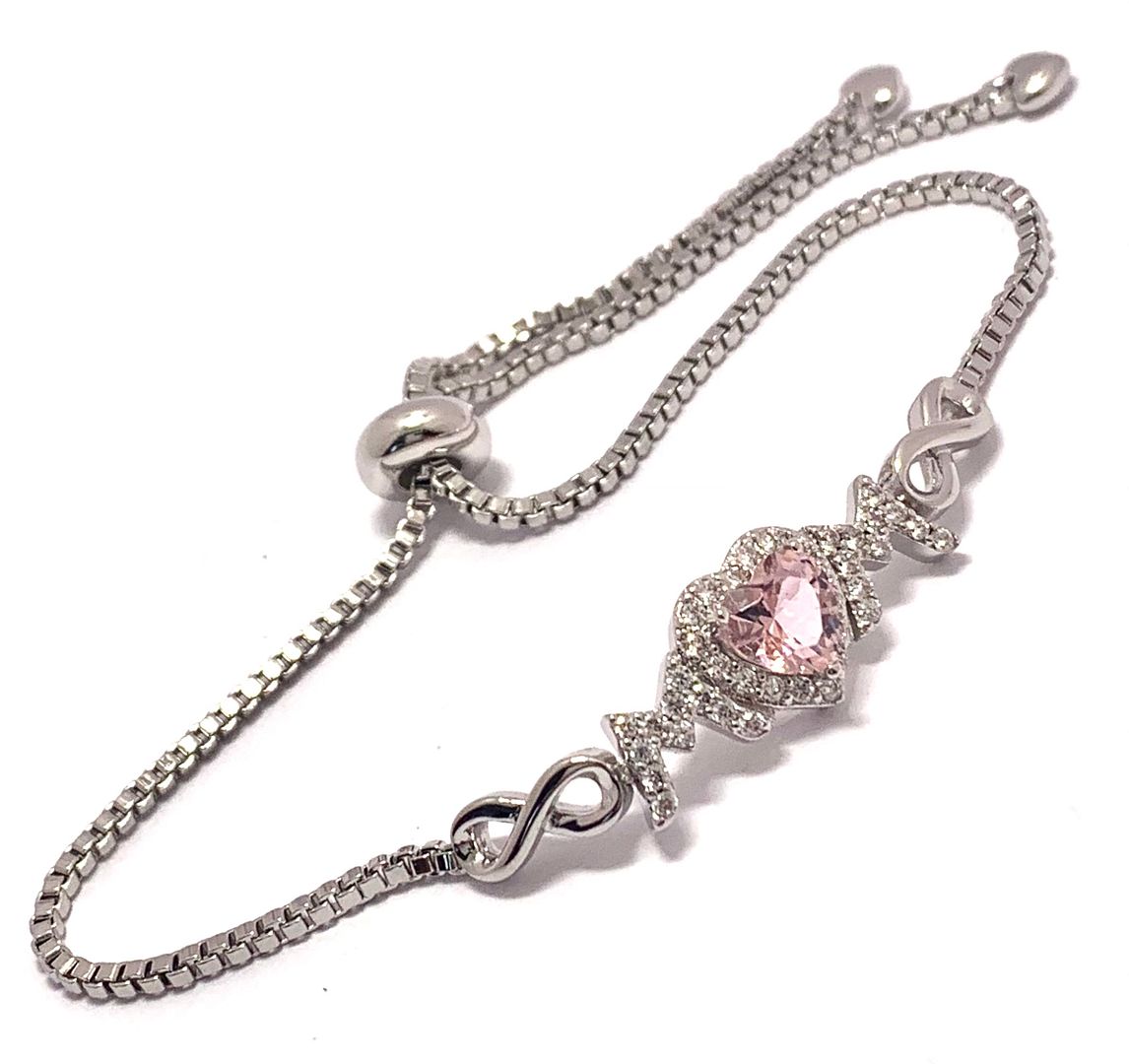 1.50ctw Pink Topaz & Diamonique Diamonds Adjustable Bracelet