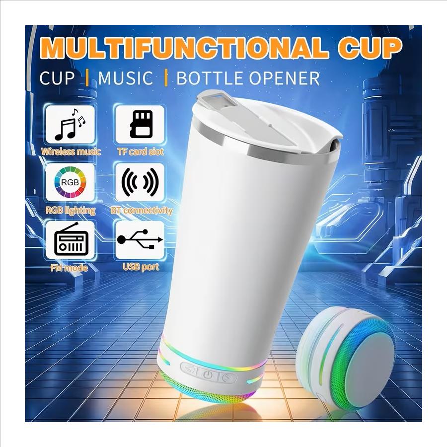 16.5oz Music Mug with Glowing LED Wireless Speaker & Thermos Thermos Suitable for Hot/Cold Drinks, Insulated Coffee Cup with Wireless Sound System,