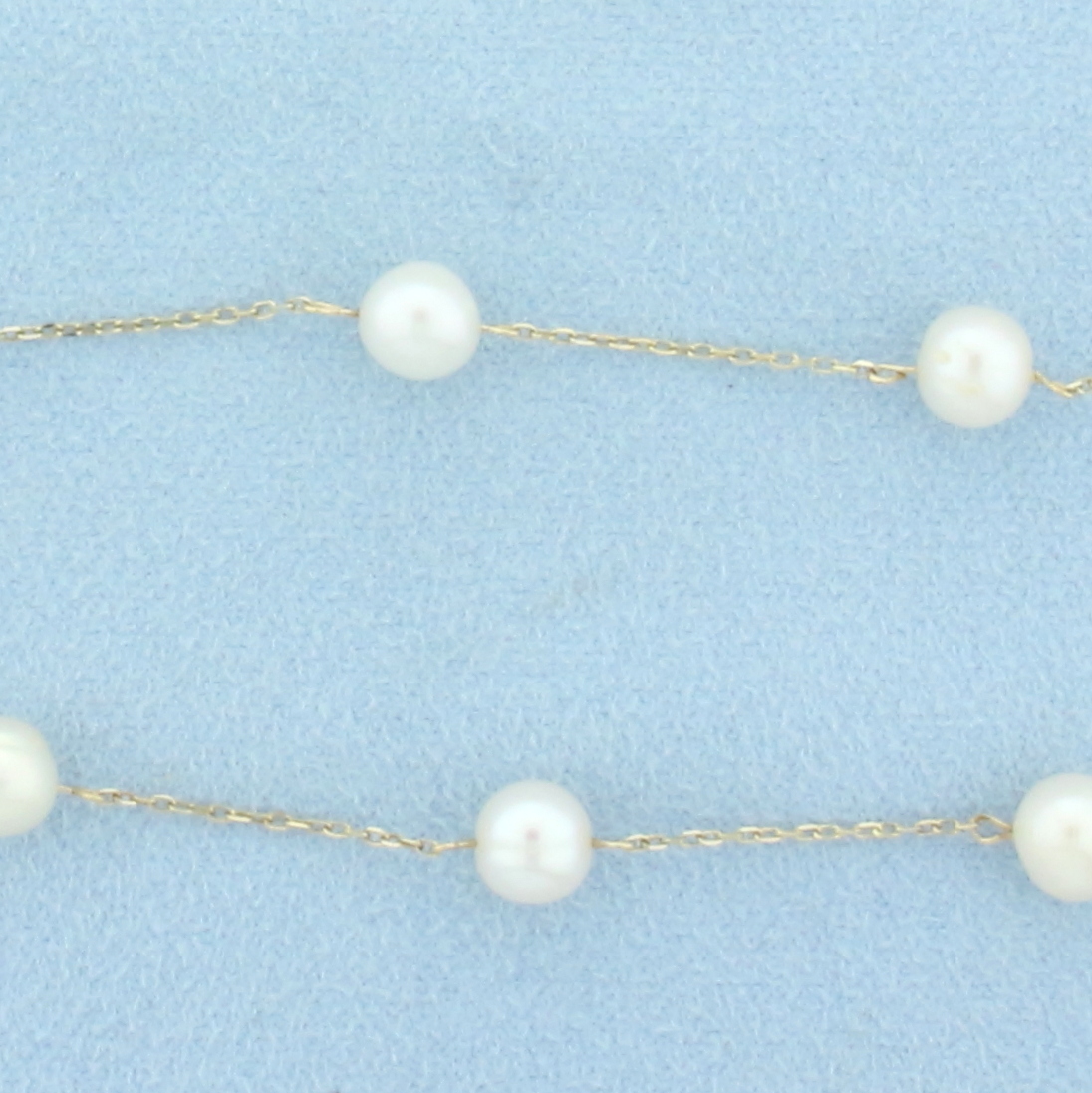 17 Inch Station Cultured Pearl Necklace in 14k Yellow Gold