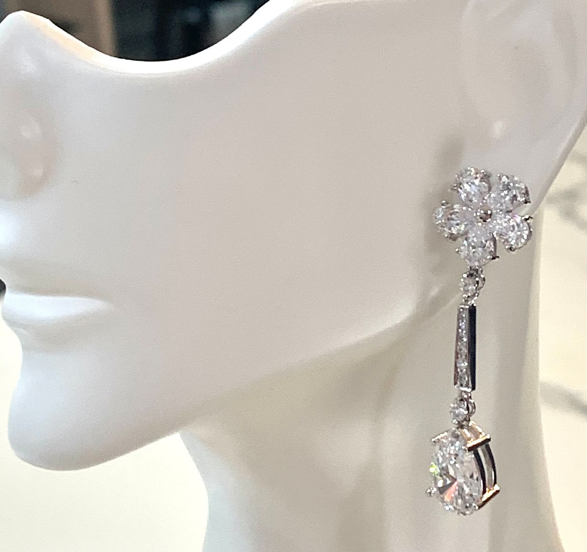 17.50ctw Moissanite Dangle Earrings in 18k WG & .925 Sterling Silver