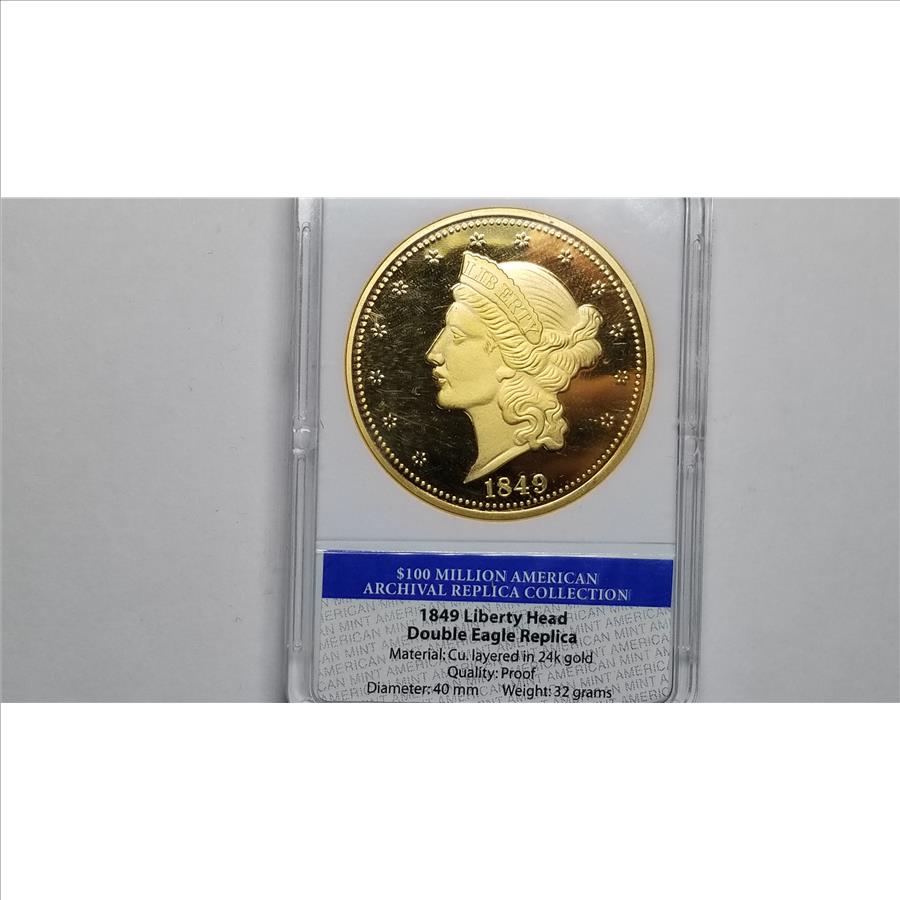 1849 Liberty Head Double Eagle Replica Cu Layered in 24k Gold