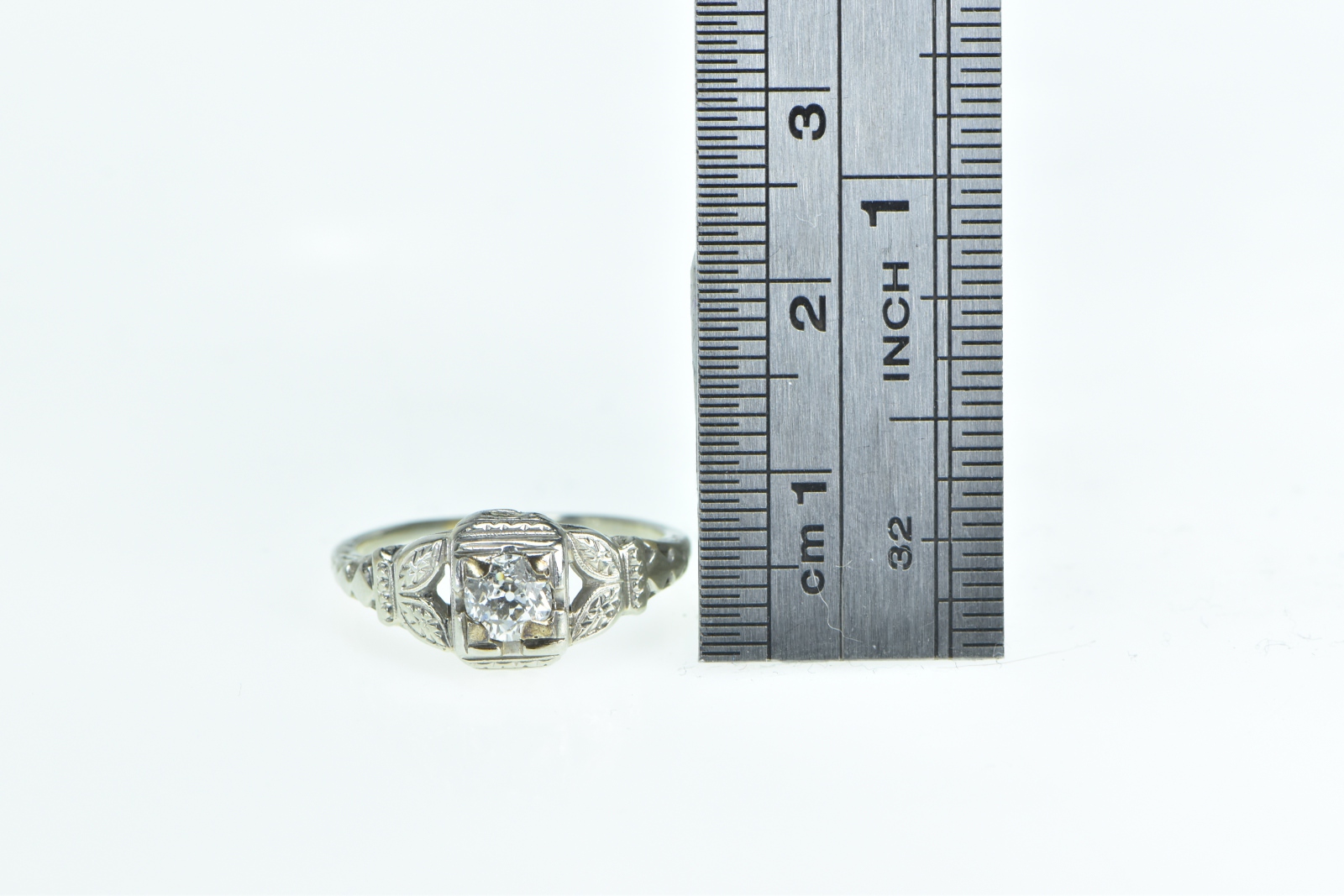 Item:  18K 0.30 Ct Old European Cut Diamond Engagement White Gold Ring, Size 5.75