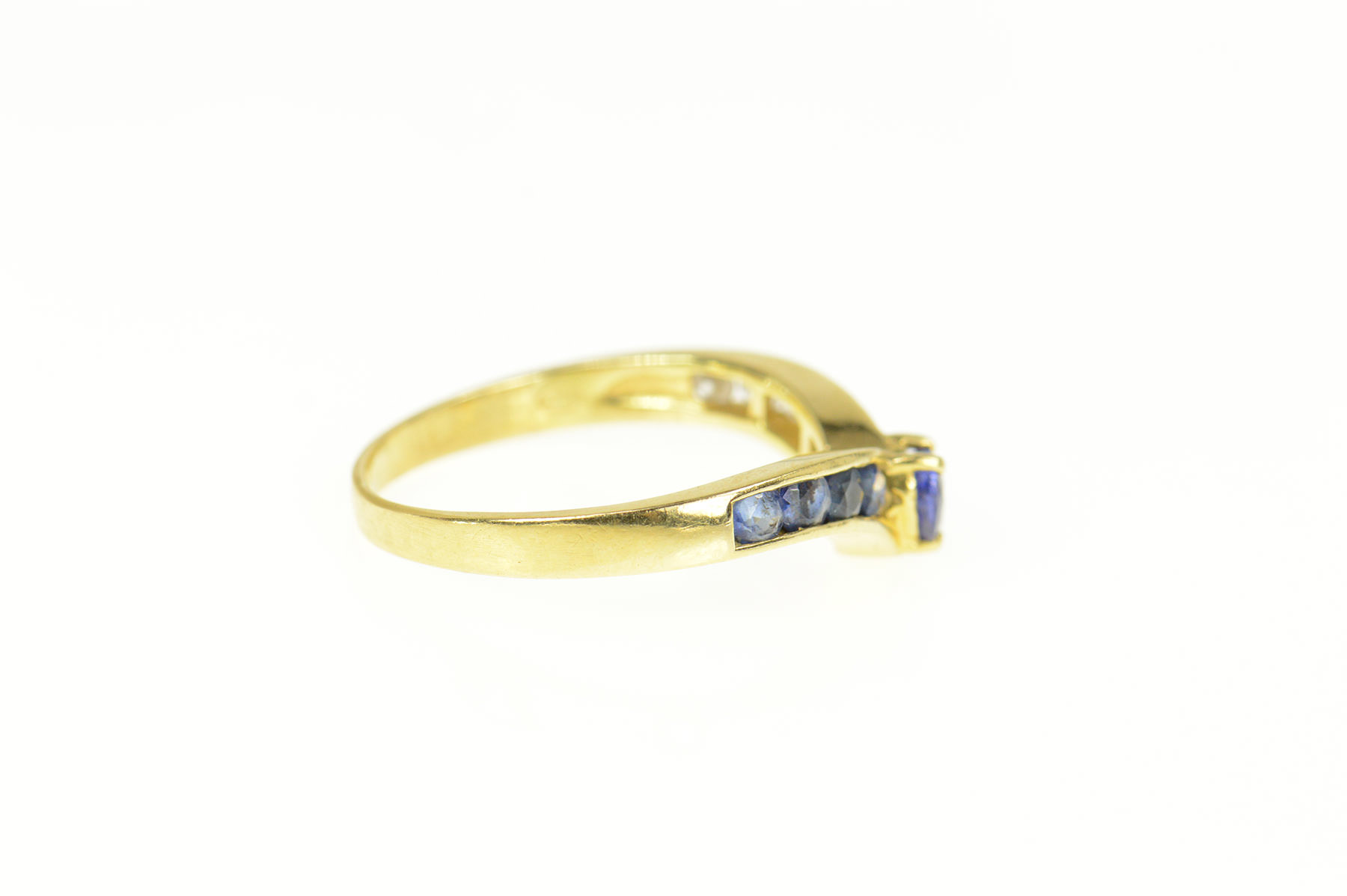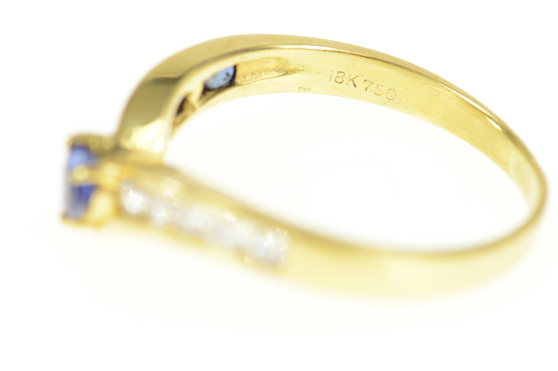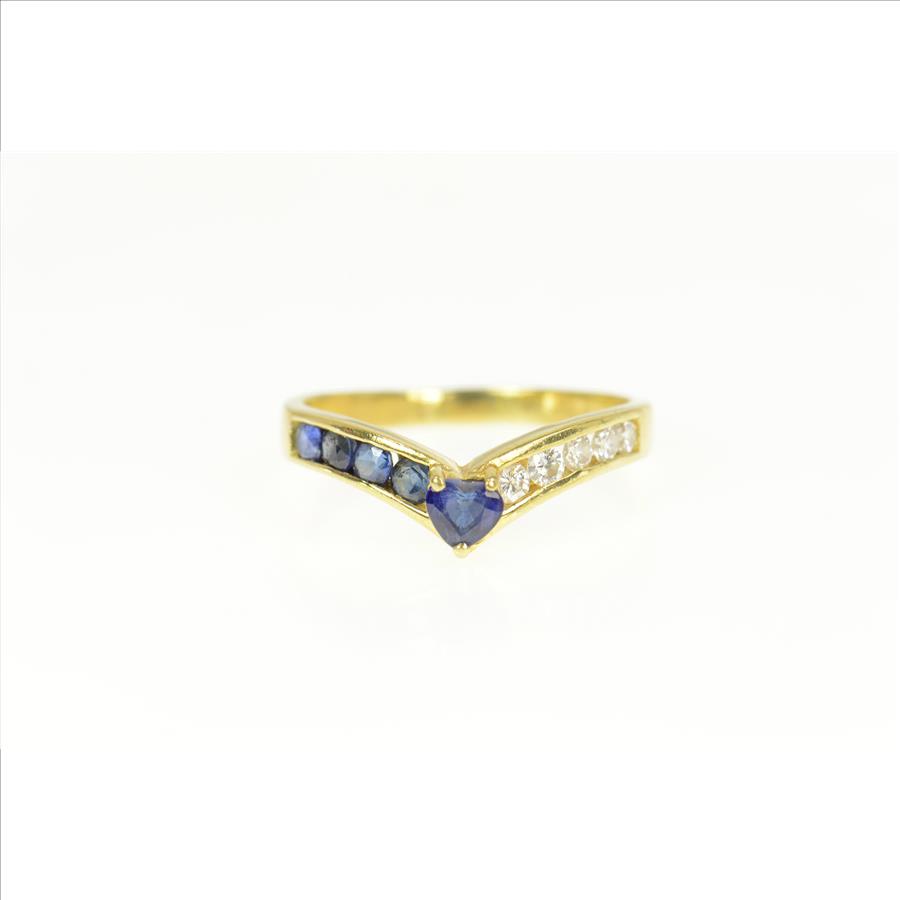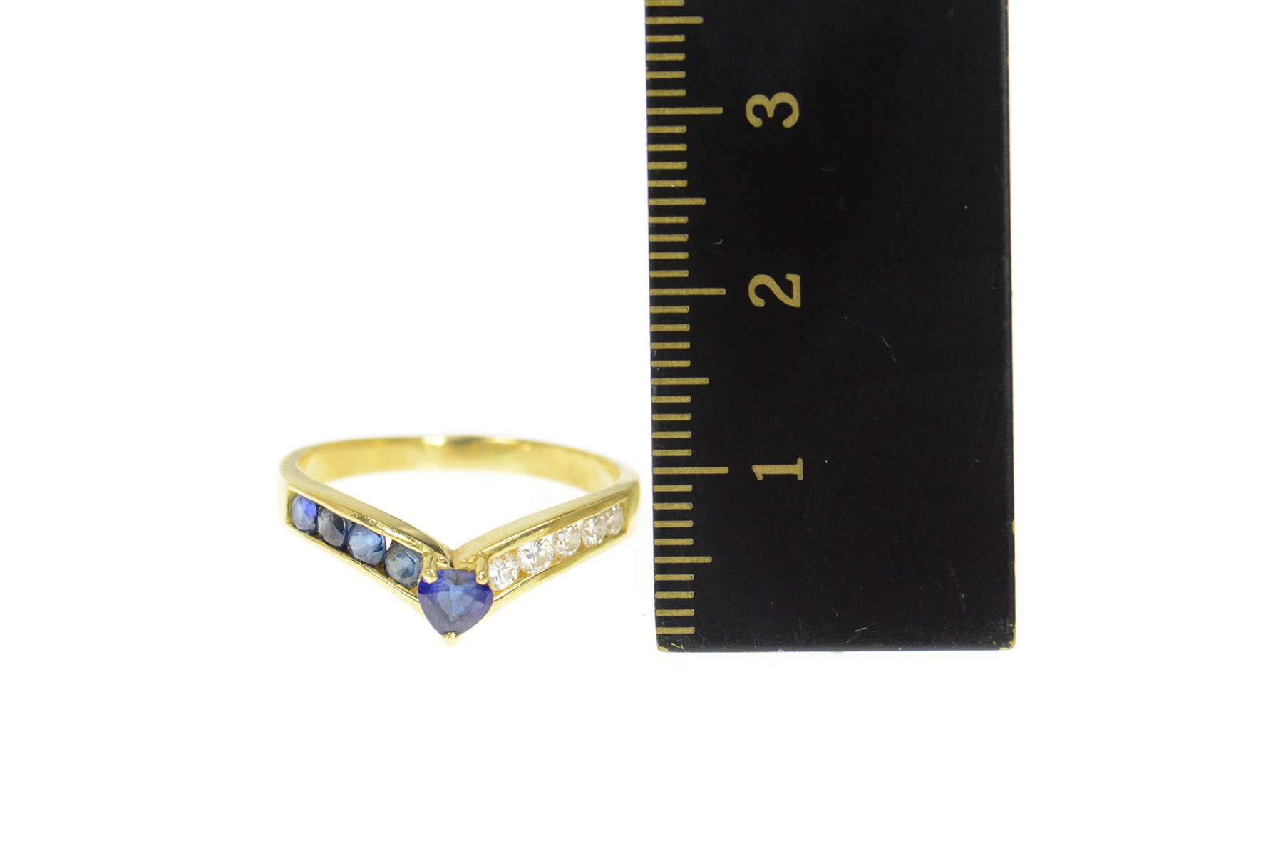 Item:  18K 1.00 Ctw Heart Sapphire Diamond Chevron Yellow Gold Ring, Size 8