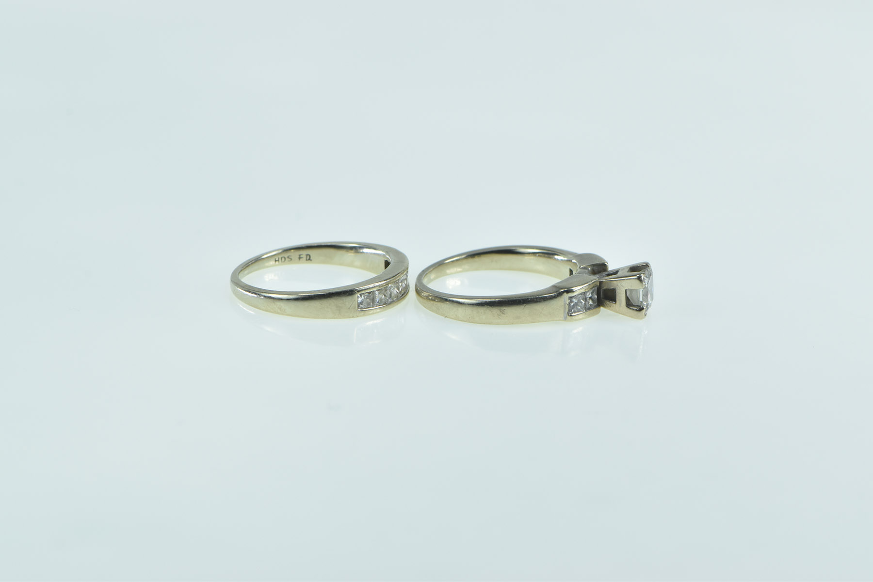 18K 1.05 Ctw Princess Diamond Engagement Set Yellow Gold Ring, Size 4.25