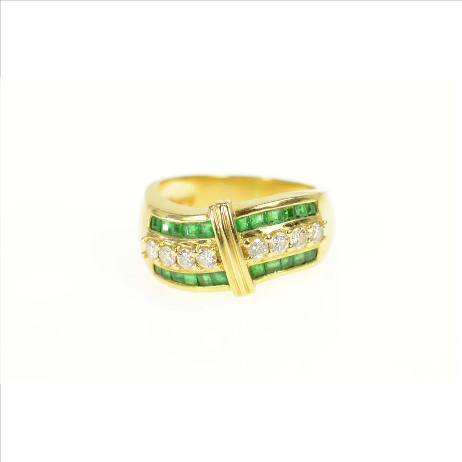 Item:  18K 1.58 Ctw Emerald Diamond Wavy Band Yellow Gold Ring, Size 7