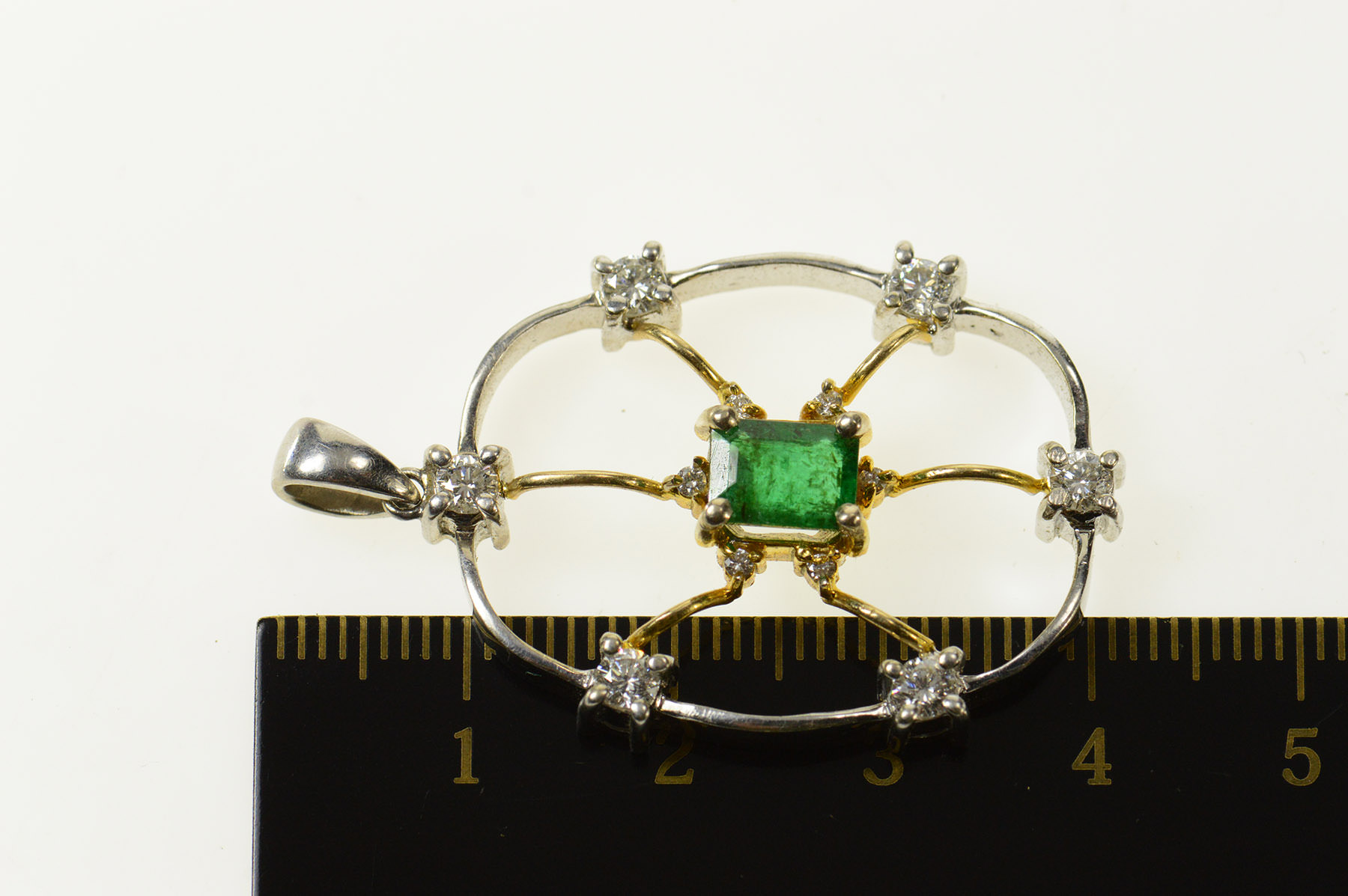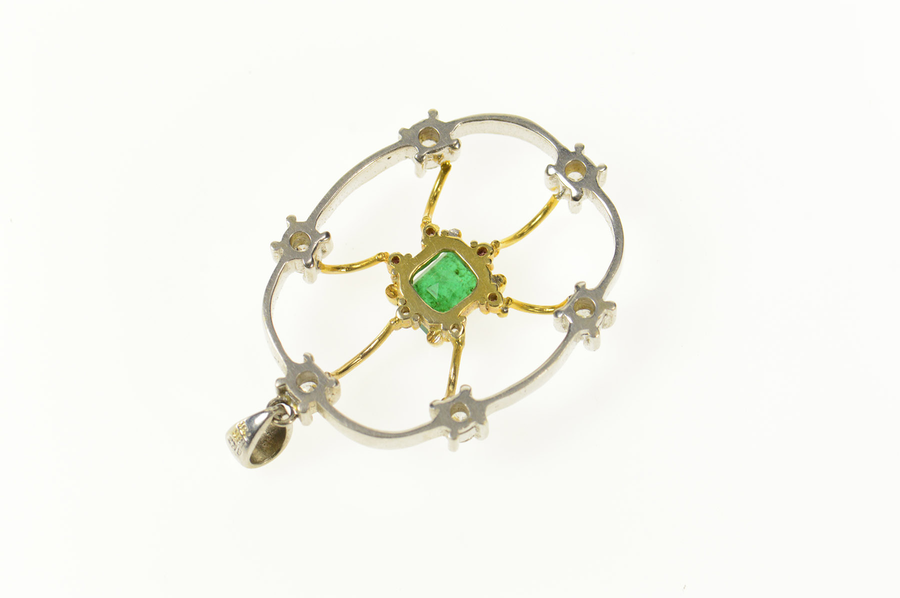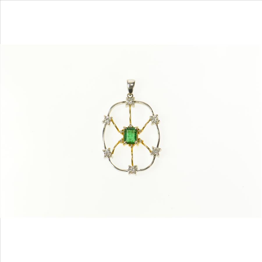 Item:  18K 1.66 Ctw Emerald Diamond Two Tone Web White Gold Pendant