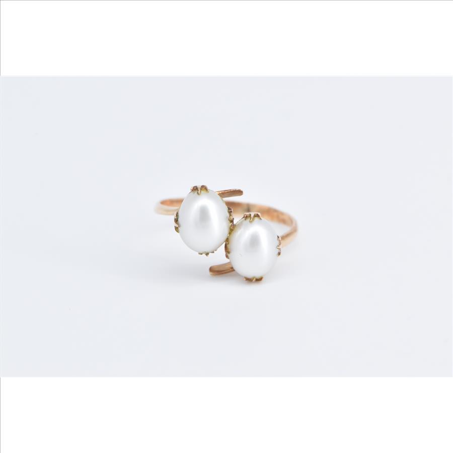 18K 1960's Vintage Pearl Ornate Freeform Bypass Yellow Gold Ring, Size 6