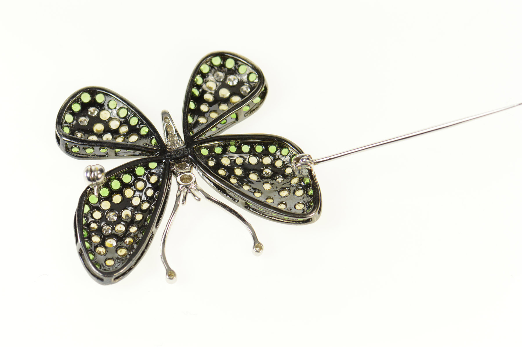 18K 5.56Ctw Pave Diamond Tsavorite Citrine Butterfly White Gold Pin/Brooch