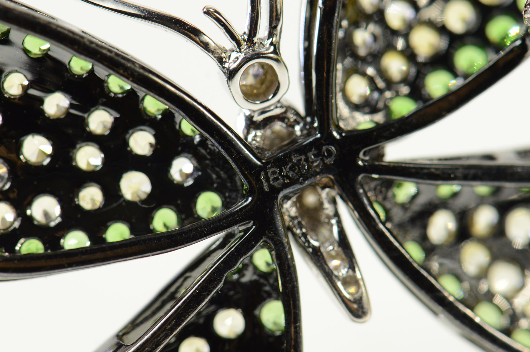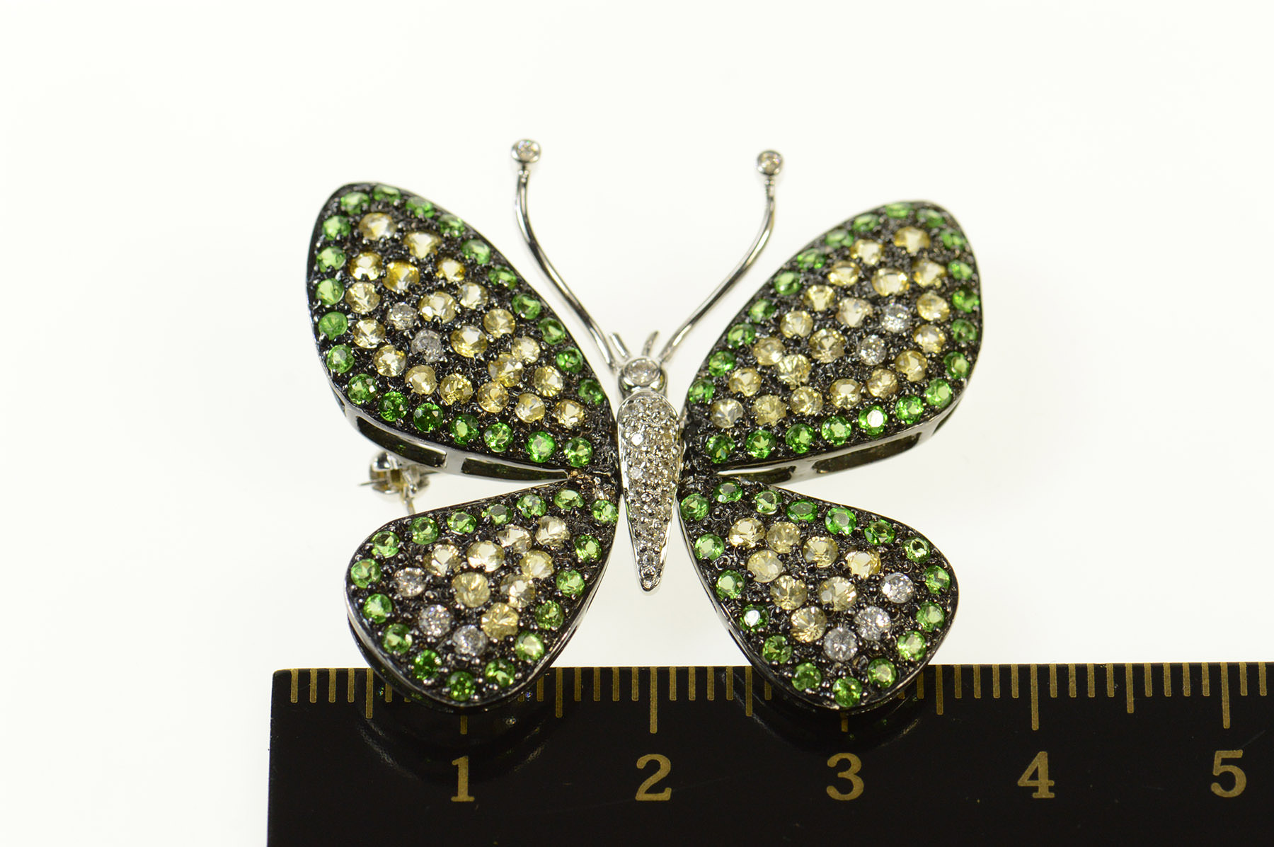 Item:  18K 5.56Ctw Pave Diamond Tsavorite Citrine Butterfly White Gold Pin/Brooch