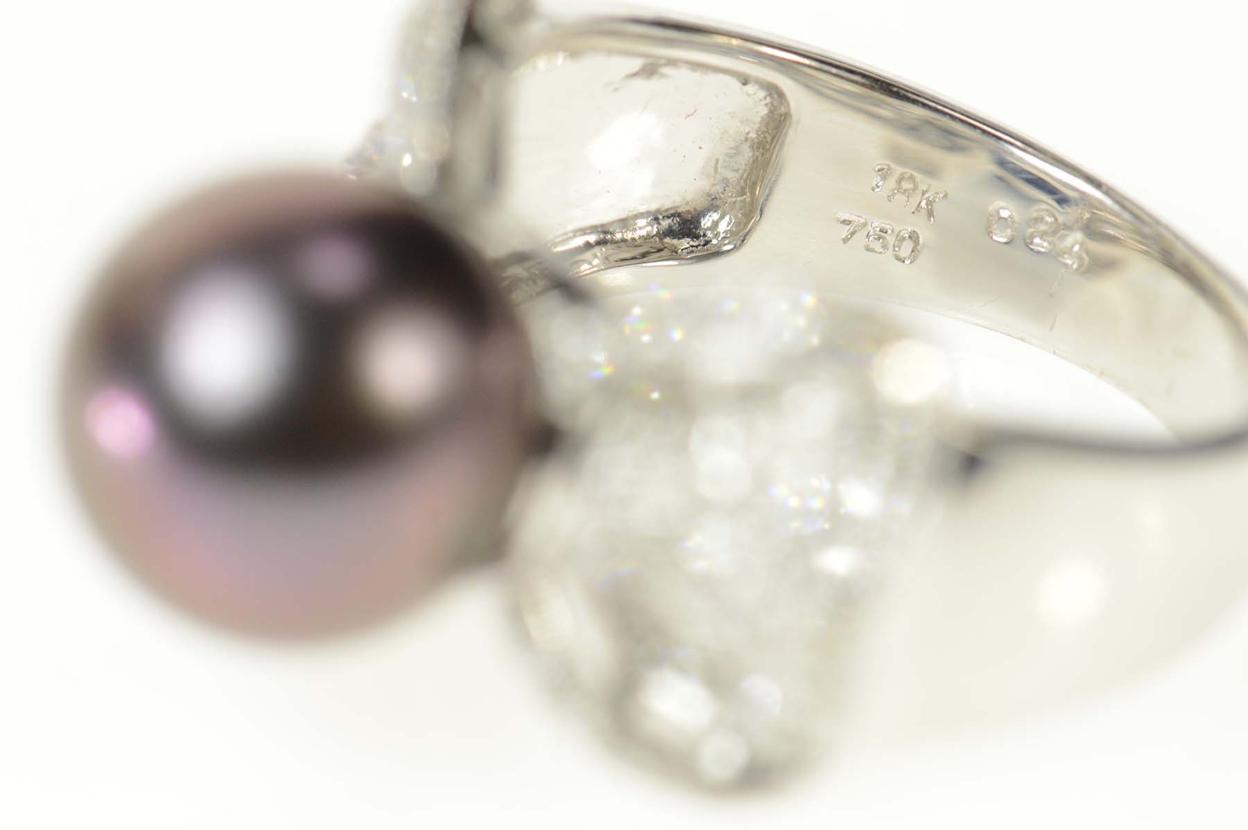 18K Black Pearl Diamond Ornate Bow Cocktail White Gold Ring, Size 6.75