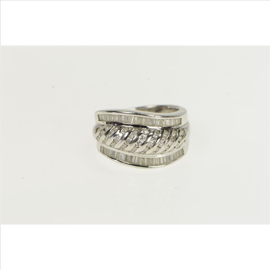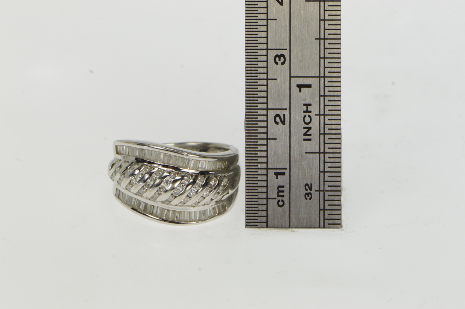 18K Ctw Diamond Encrusted Statement Band White Gold Ring, Size 7