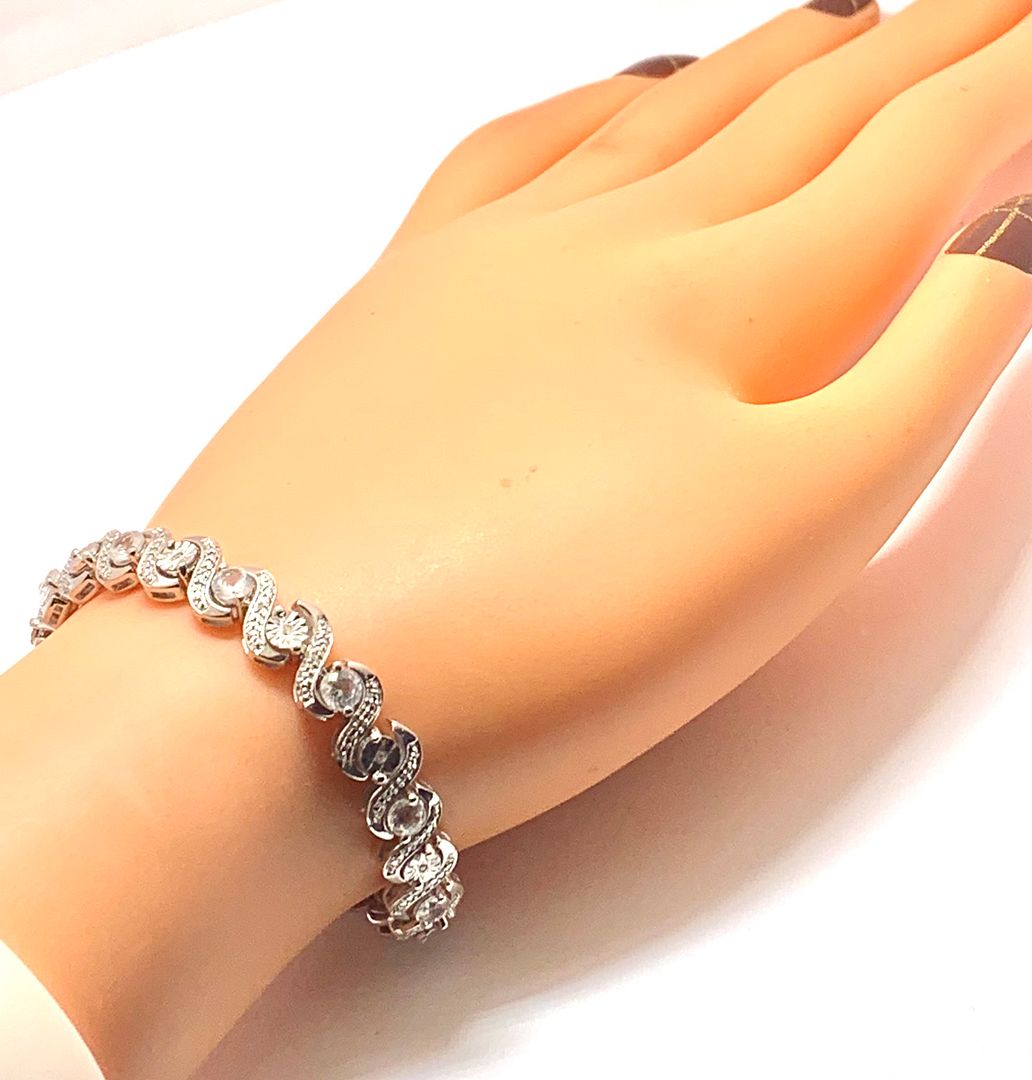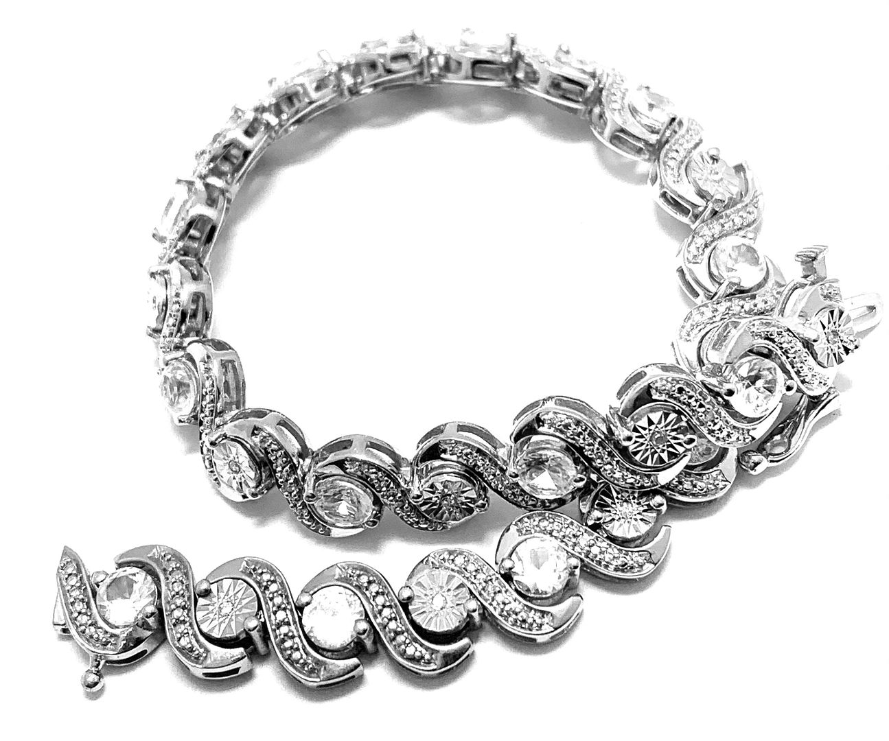18k Gold & .925 Sterling Silver 0.05ctw Genuine Diamond & 3.255ctw Genuine White Topaz Tennis Bracelet