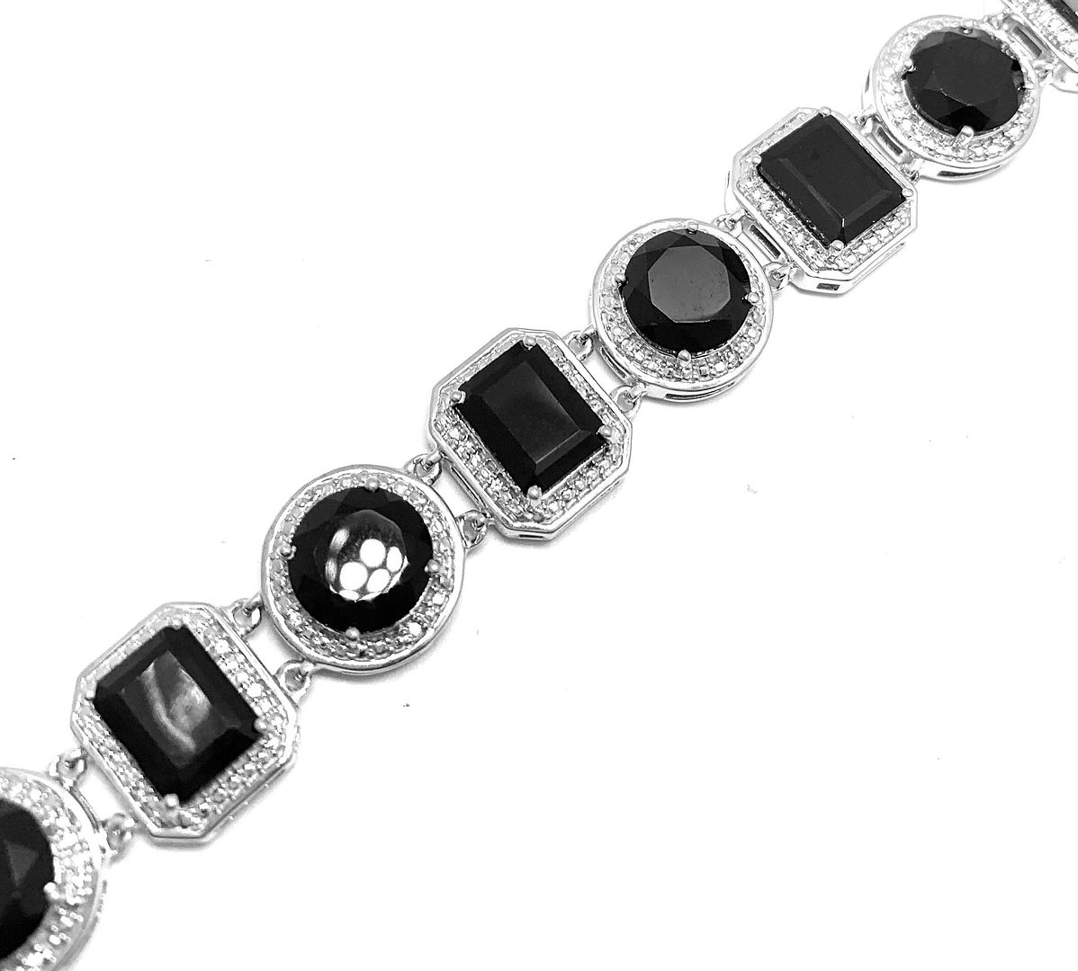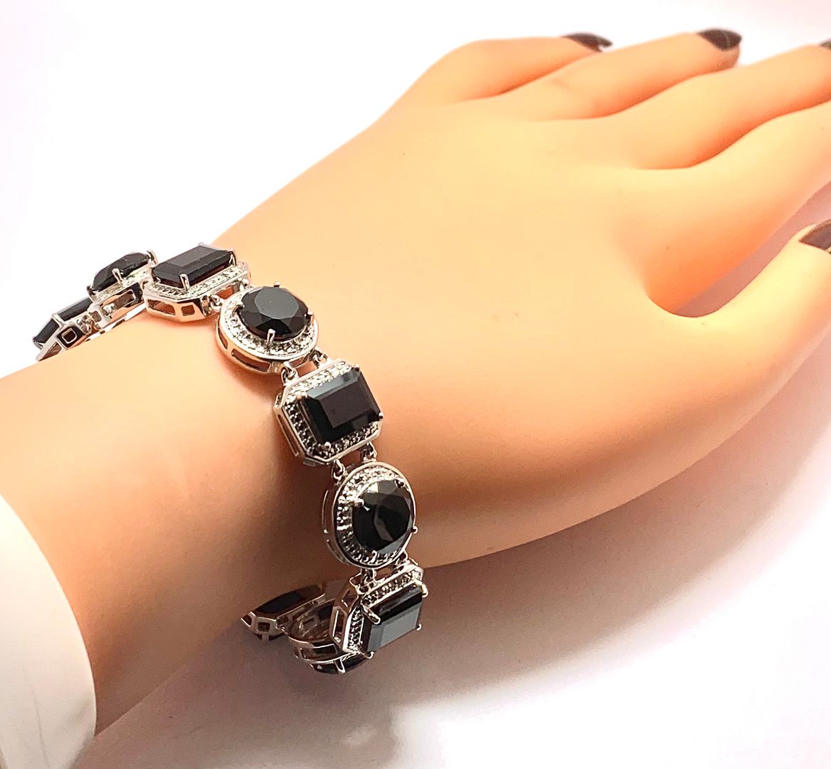18k Gold & .925 Sterling Silver Diamonique Diamond & Black Onyx Large Tennis Bracelet