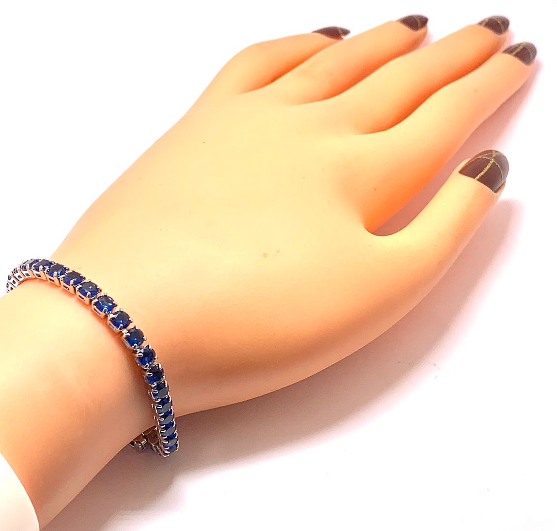 18K Gold Overlay 10.00ctw Blue Sapphire Tennis Bracelet
