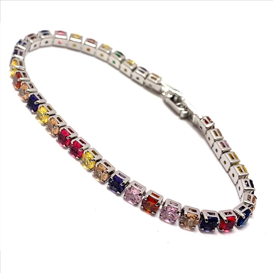 18K Gold Overlay 10.00ctw Multicolor Stones Tennis Bracelet