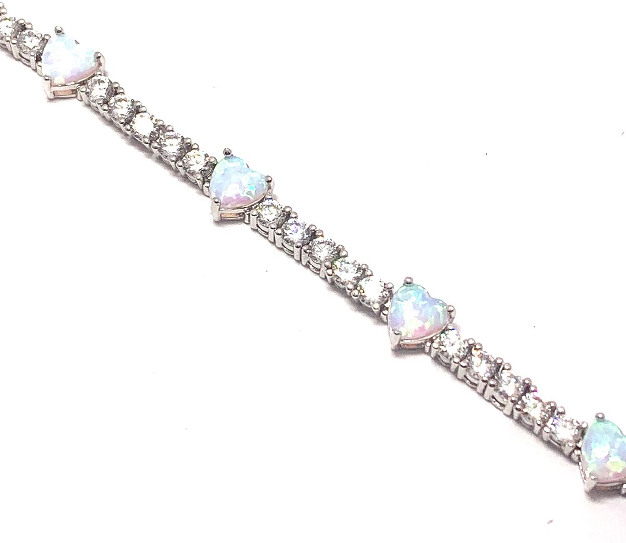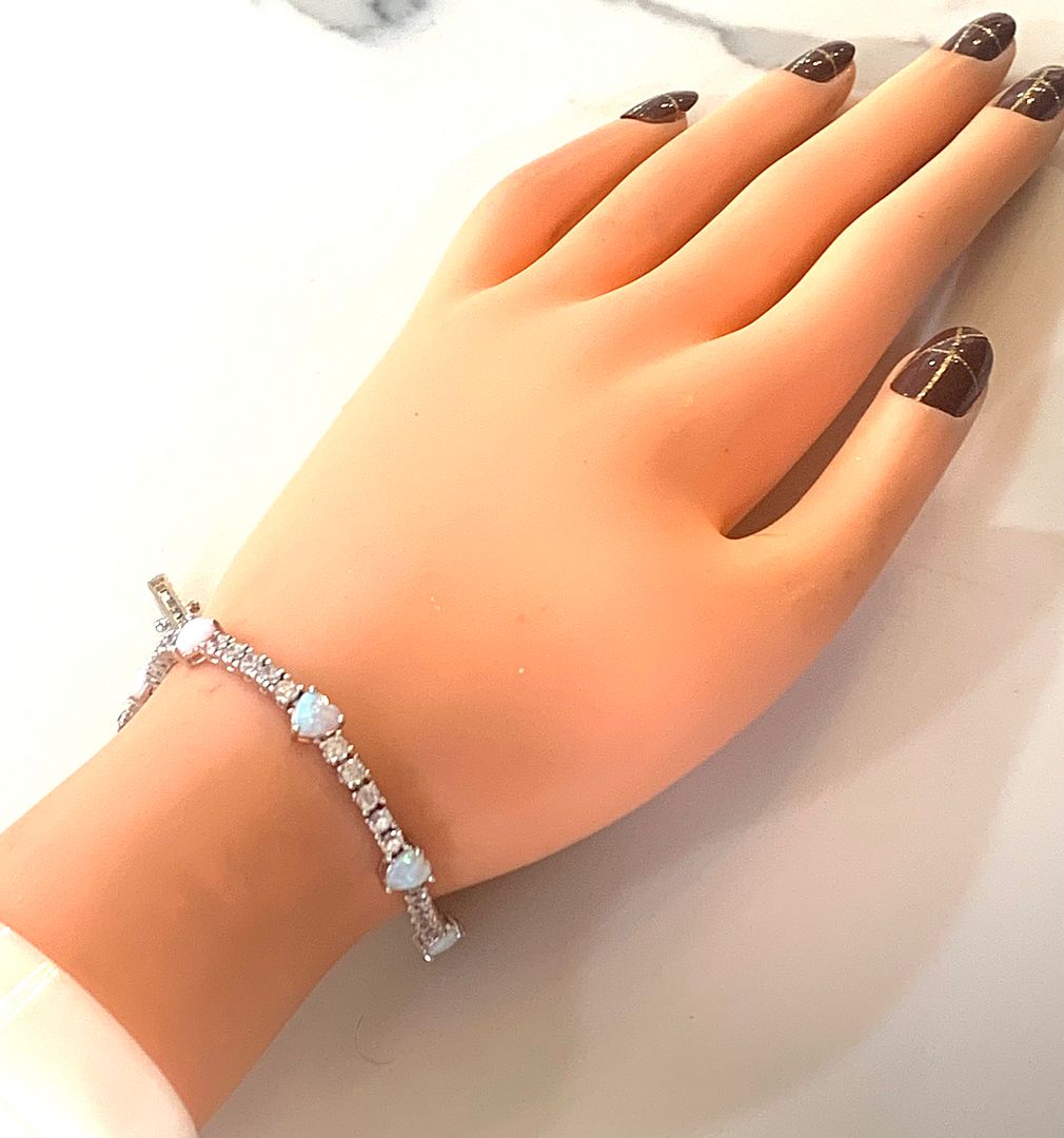 18k Gold Overlay 13.00ctw Opal & Diamonique Diamond Tennis Bracelet