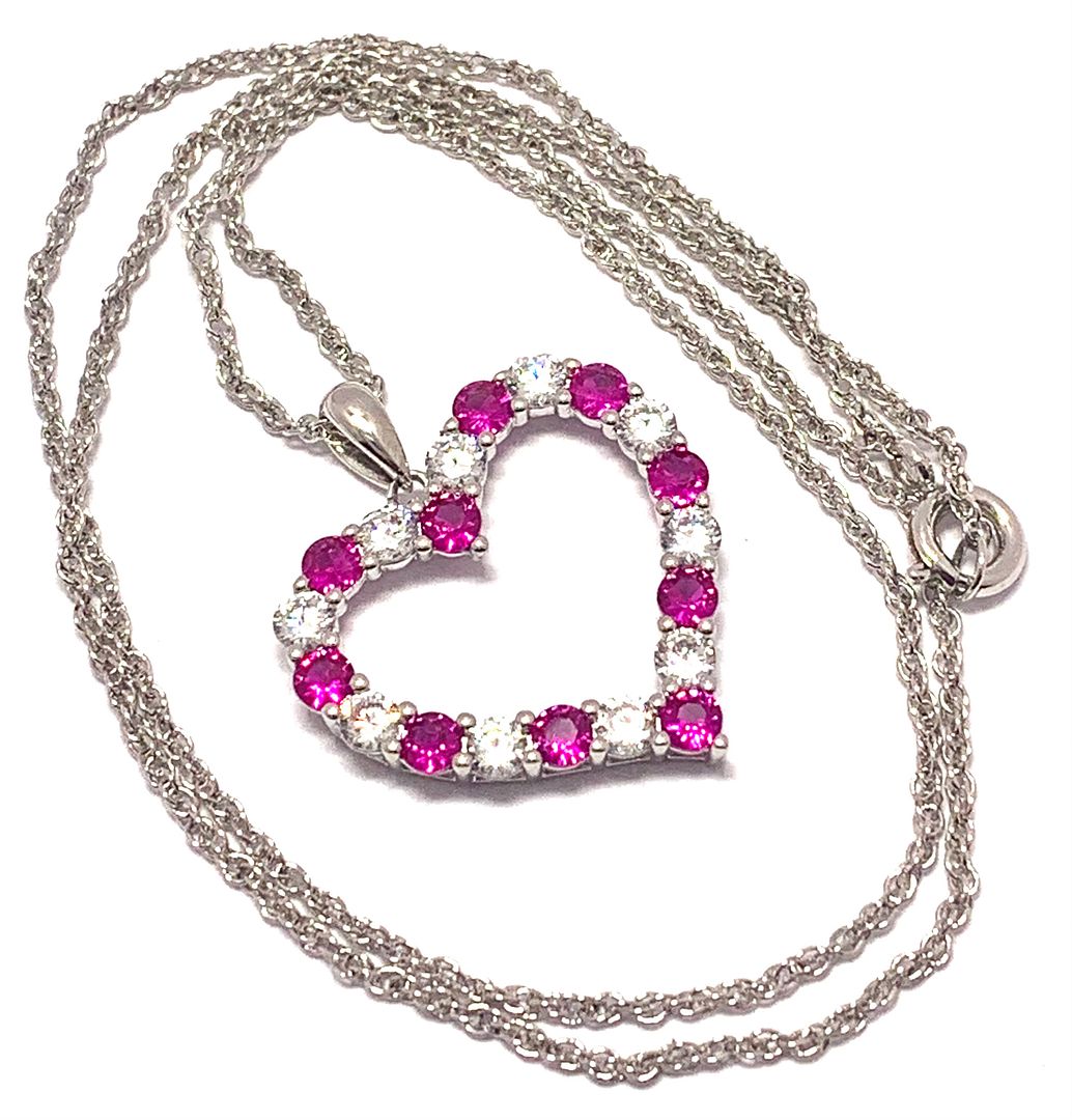 18k Gold Overlay 2.00ctw Ruby & Diamonique Diamonds Heart Necklace