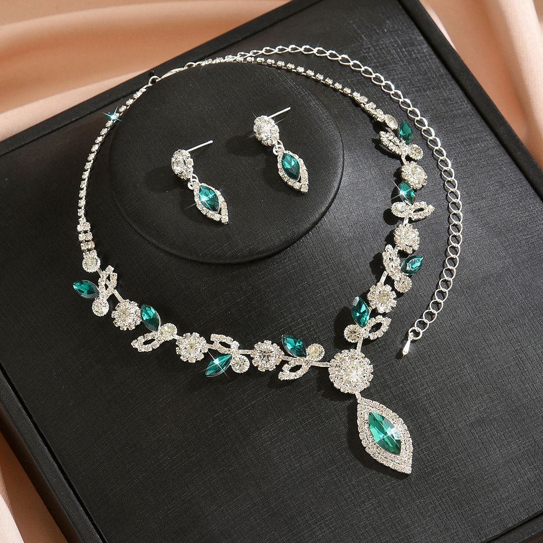 18k Gold Overlay 35.00ctw Emerald & Diamonique Diamond Necklace & Earrings Set