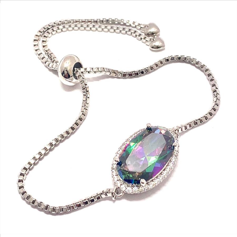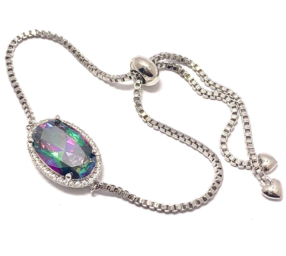 18k Gold Overlay 35.00ctw Mystic Topaz & Diamonique Diamond Adjustable Tennis Bracelet