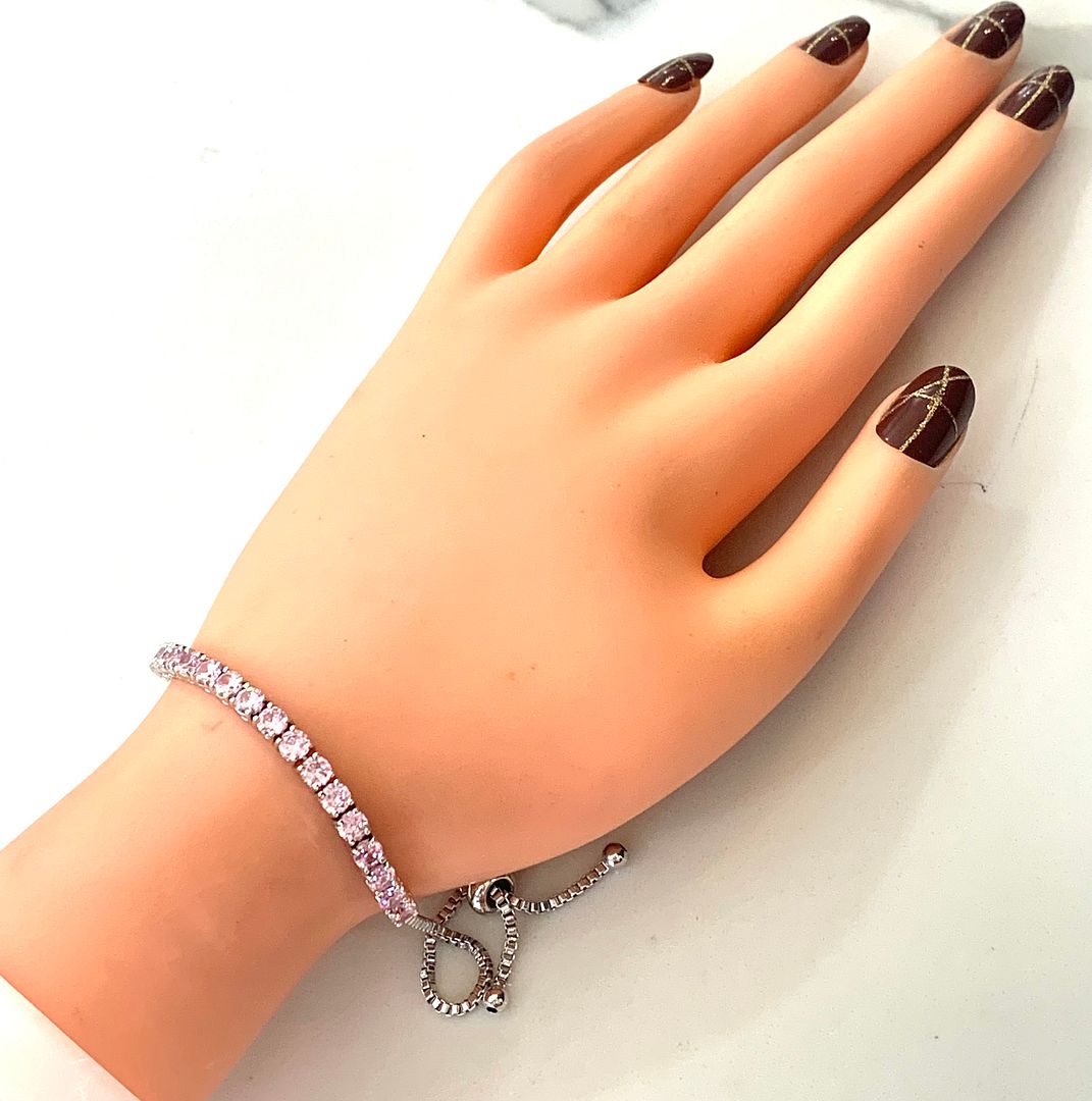 18k Gold Overlay 5.00ctw Pink Topaz Adjustable Tennis Bracelet