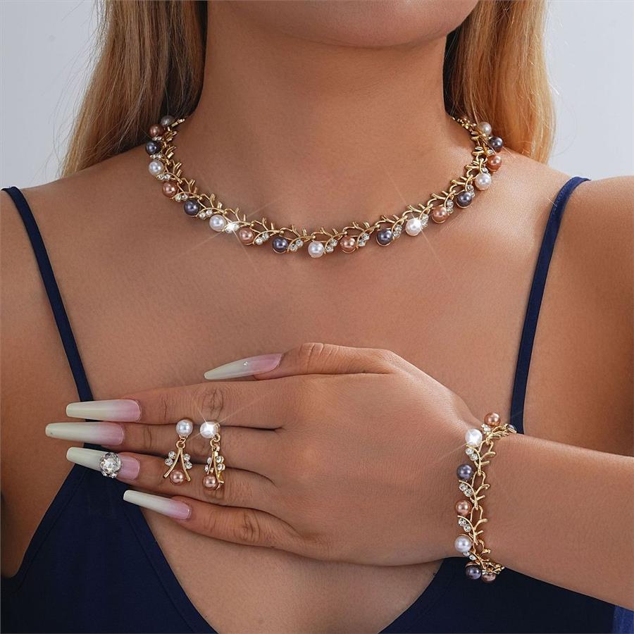 18K Gold Overlay 6mm Multicolor Pearls & Diamonique Diamond Necklace & Earrings Set