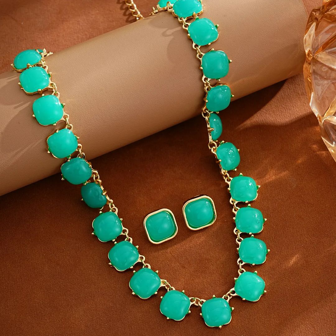 18K Gold Overlay Turquoise Necklace & Earrings Set