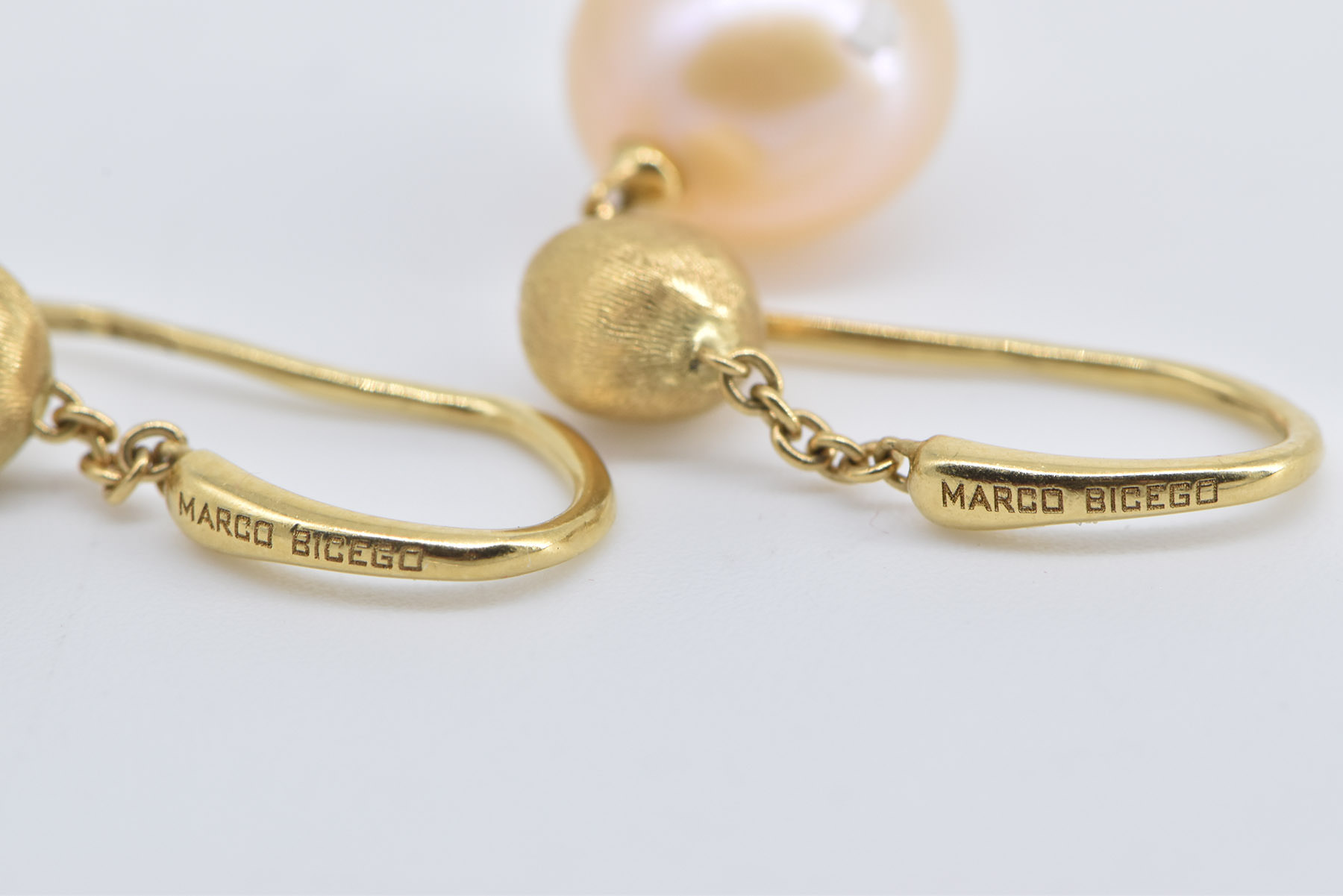 18K Marco Bicego Pearl Africa Collection Dangle Yellow Gold Earrings