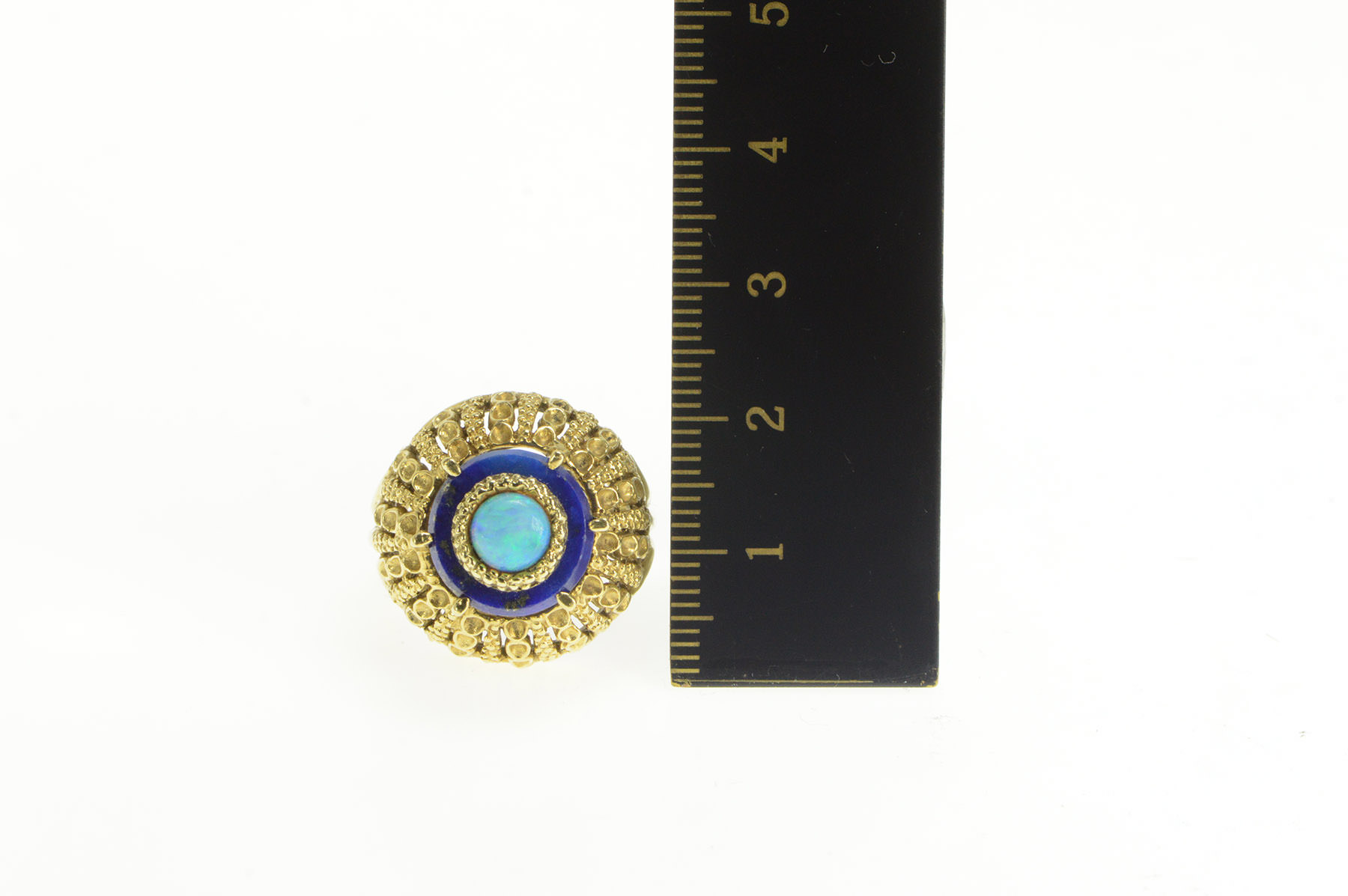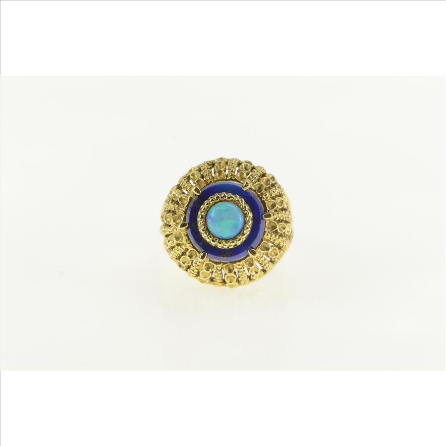 18K Opal Lapis Lazuli 1960's Domed Cocktail Yellow Gold Ring, Size 6.5