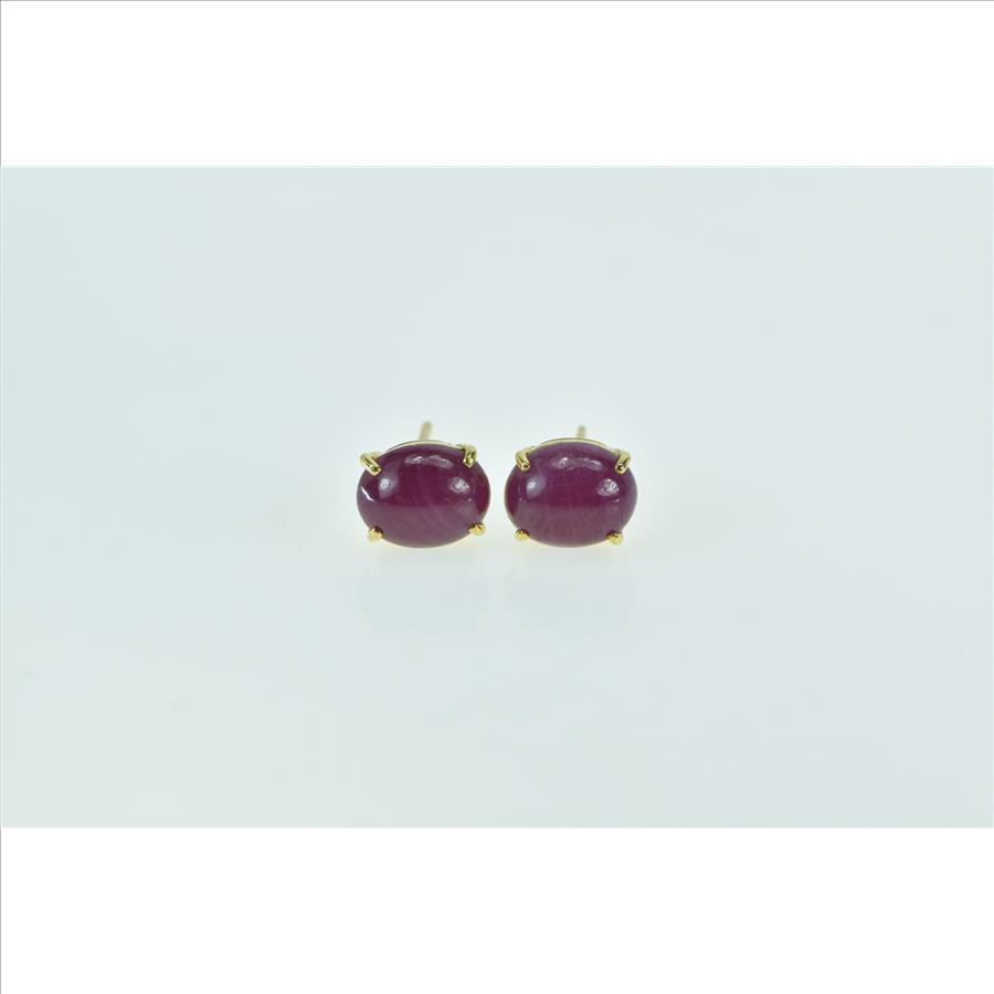 Item:  18K Oval Ruby Cabochon Vintage Stud Yellow Gold Earrings