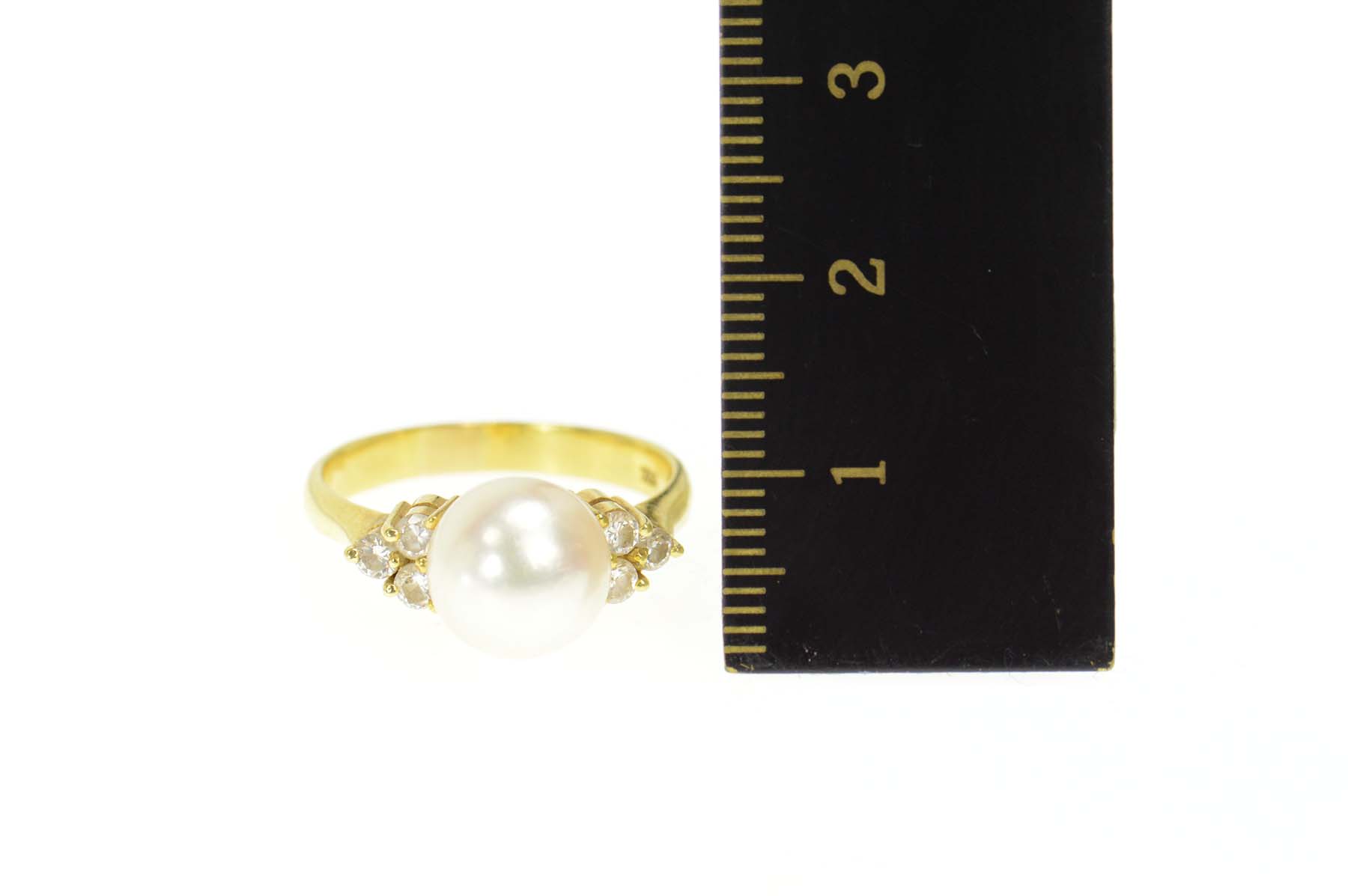 18K Pearl 0.24 Ctw Diamond Classic Engagement Yellow Gold Ring, Size 8.25