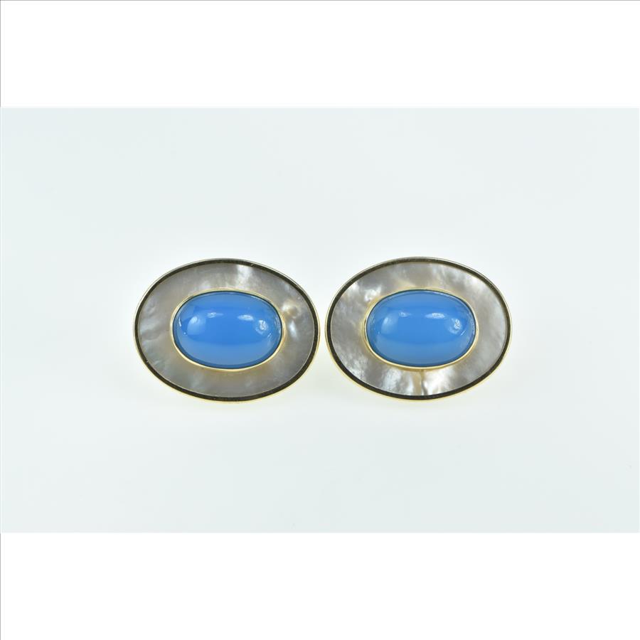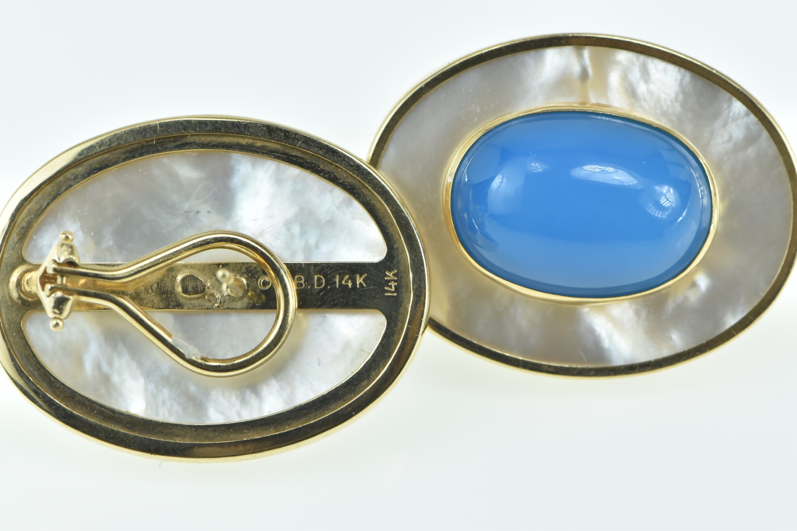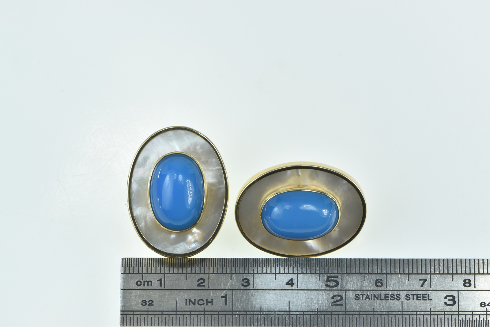 18K Peter Brams Design Mother of Pearl Turquoise Yellow Gold Earrings