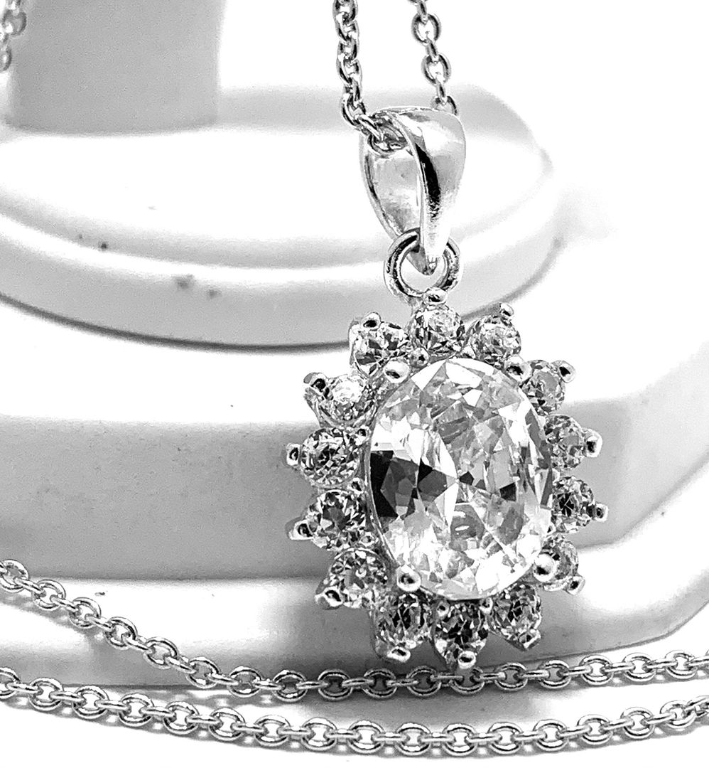 18k White Gold & Fine Jewelry Bronze 8.00ctw White Crystal Necklace & Stud Earrings Set