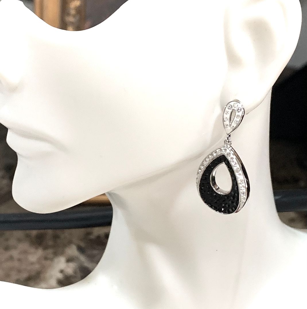 18k White Gold & Jewelry Bronze 3.00ctw Black & White Crystal Earrings