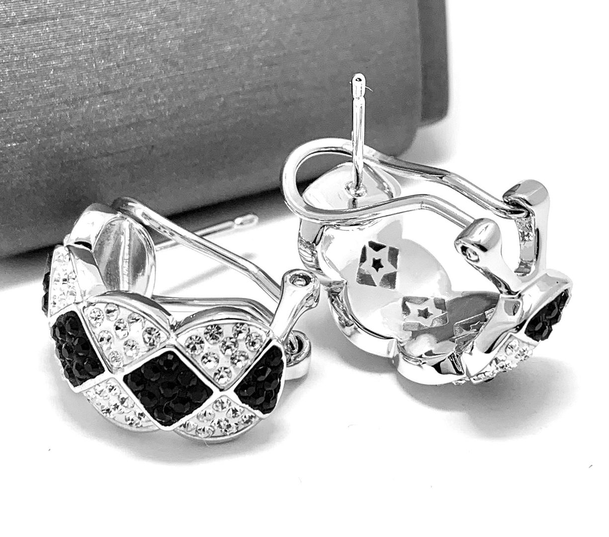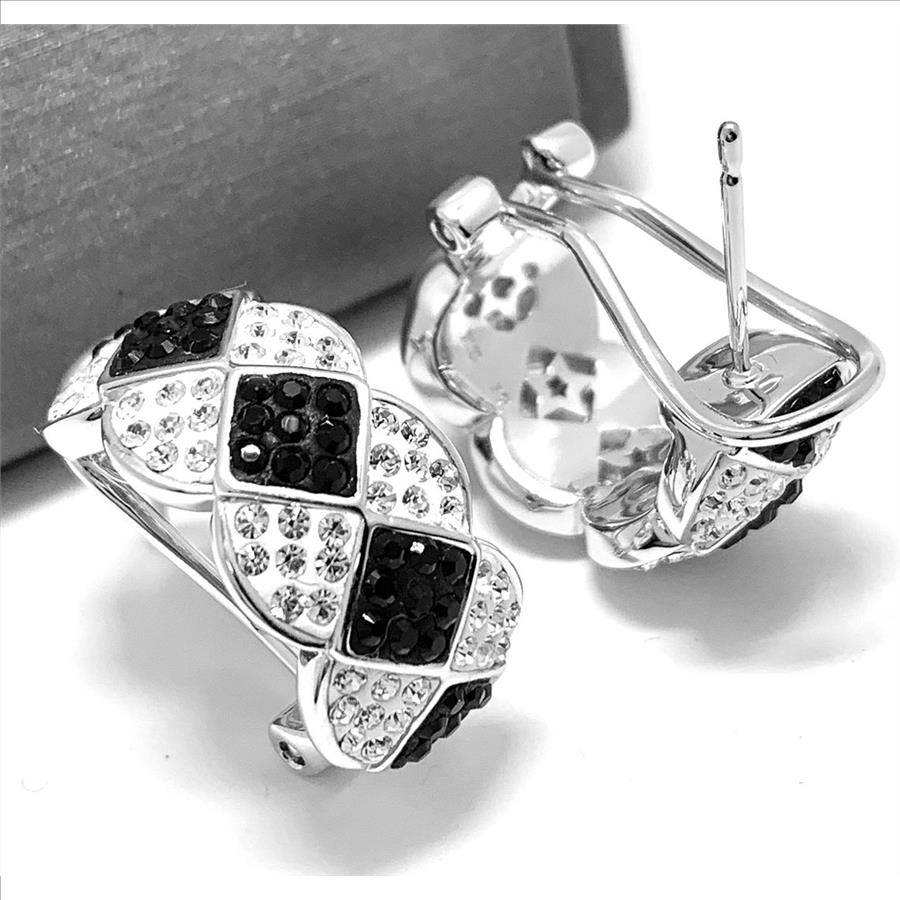 18k White Gold & Jewelry Bronze 3.00ctw Black & White Crystal Hoop Earrings
